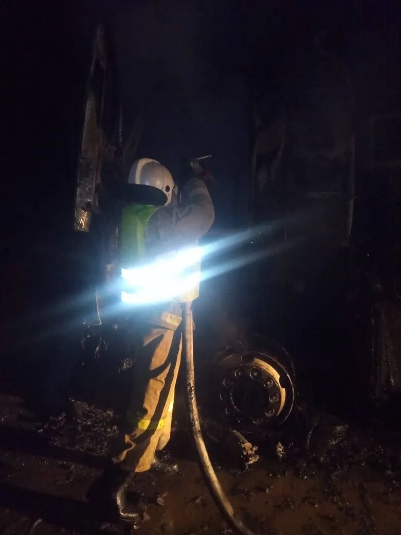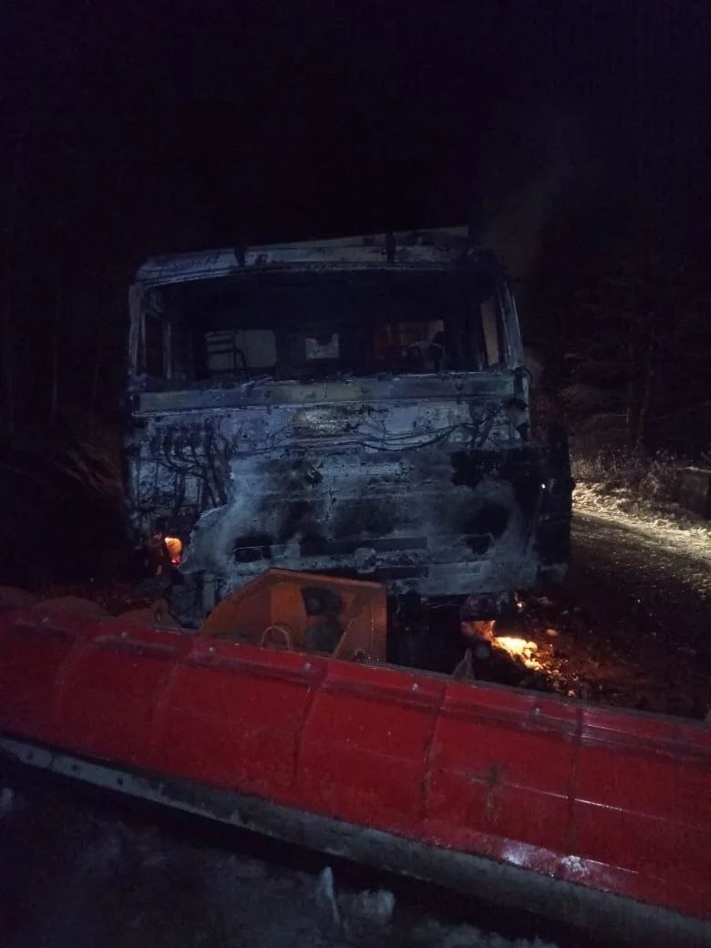Пожар произошел на 43 километре автодороги «Поселок Пушной — деревня Новое Машезеро». Там загорелась снегоуборочная машина «КамАЗ».
