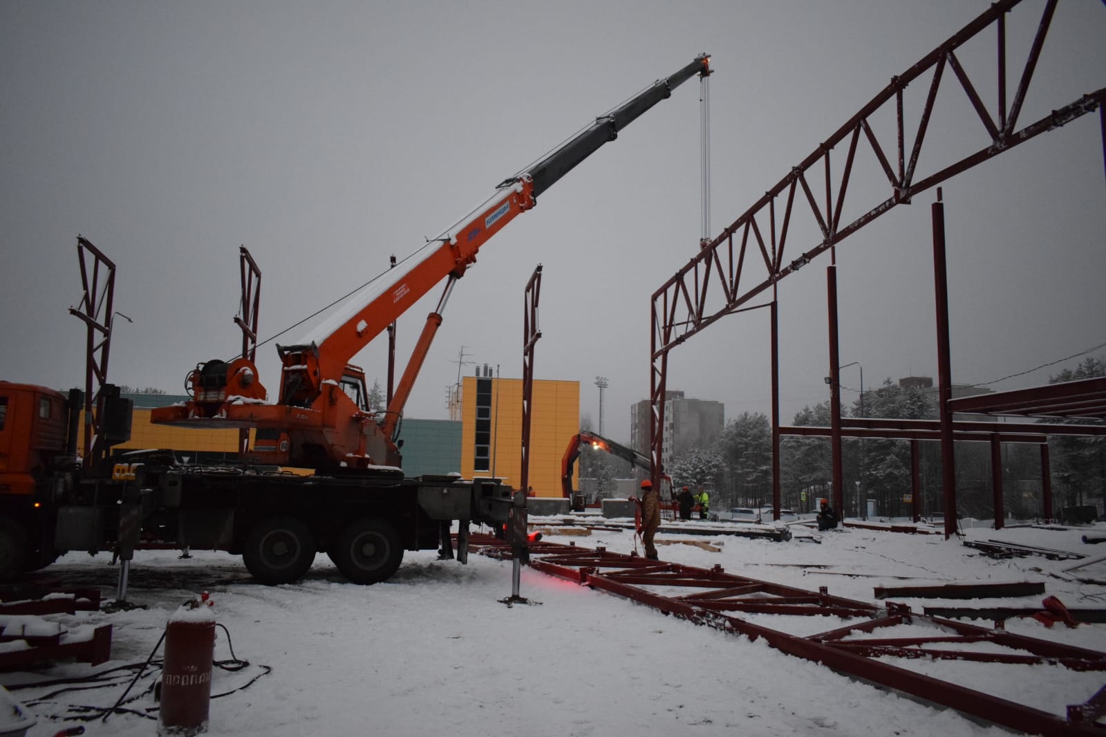 Спикер парламента вместе с Главой округа Александром Дмитриевым и Председателем Совета округа Еленой Соболевой побывал на строительстве крытой ледовой площадки.