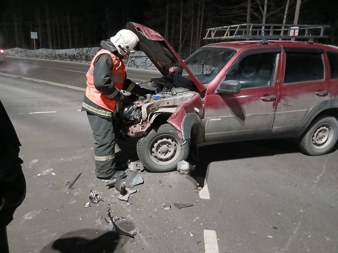 На место происшествия выезжал пожарно-спасательный отряд из поселка Чална. Спасатели помогли отключить аккумуляторы в автомобилях и эвакуировать пострадавшую женщину в карету скорой помощи. На месте также работали сотрудники ГИБДД и медики.