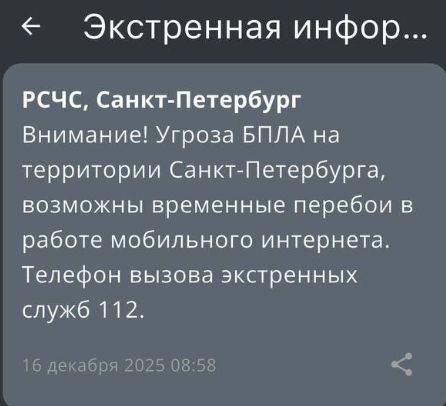 Опасность БПЛА объявили сегодня утром, 16 декабря, в воздушном пространстве Ленобласти, сообщил губернатор региона Александр Дрозденко.