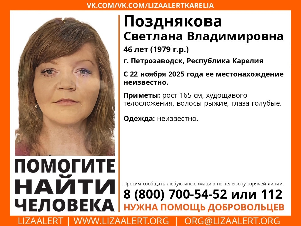 В Петрозаводске пропала Позднякова Светлана Владимировна.