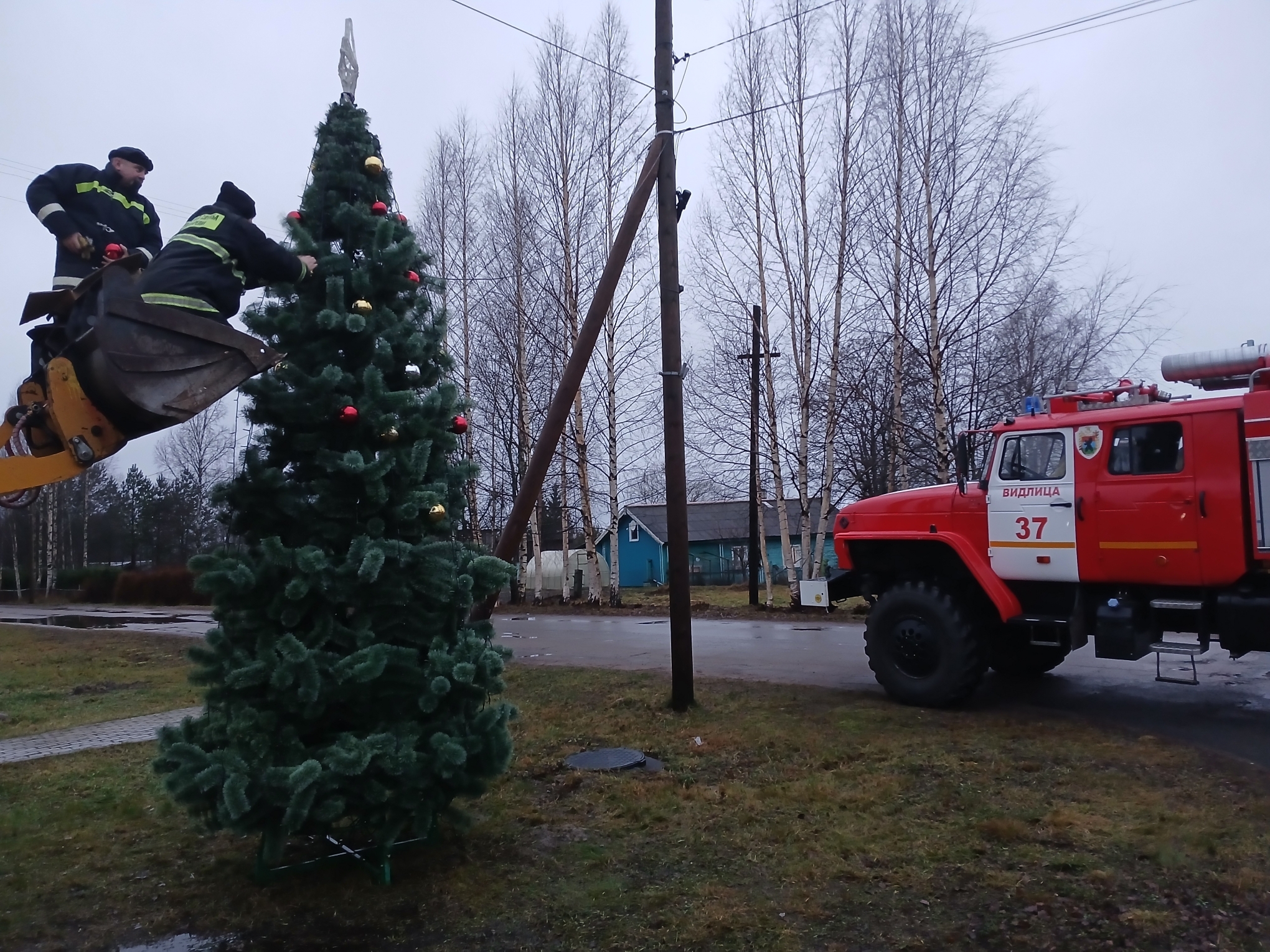 Пожарные Олонецкого района помогли установить главный новогодний символ. Личный состав пожарной части №37 по охране села Видлица оказал помощь местной администрации в установке праздничной елки для жителей поселения.