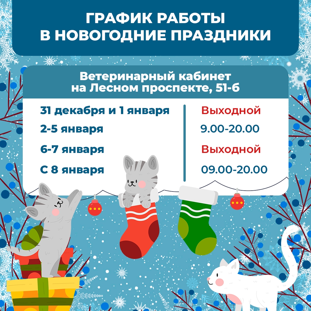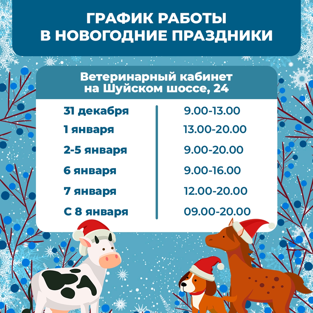 Республиканский центр ветеринарии Карелии опубликовал график работы своих кабинетов в Петрозаводске на период новогодних праздников.