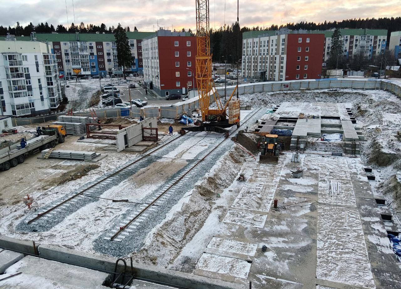 — В Петрозаводске на ул. Белинского возводят самый большой дом на 251 квартиру (идет монтаж цоколя и верхних этажей).