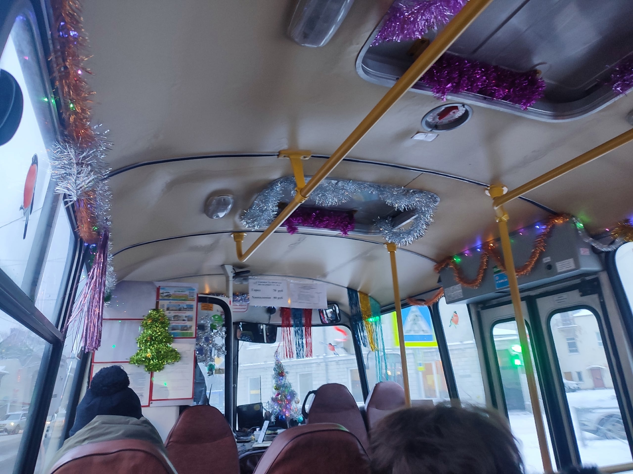 Сергей Крупин публично поблагодарил водителя автобуса № 2 Сергея Геннадьевича за его труд и творческий подход. Водитель украсил салон своего автобуса к праздникам, создав для пассажиров настоящее новогоднее настроение.