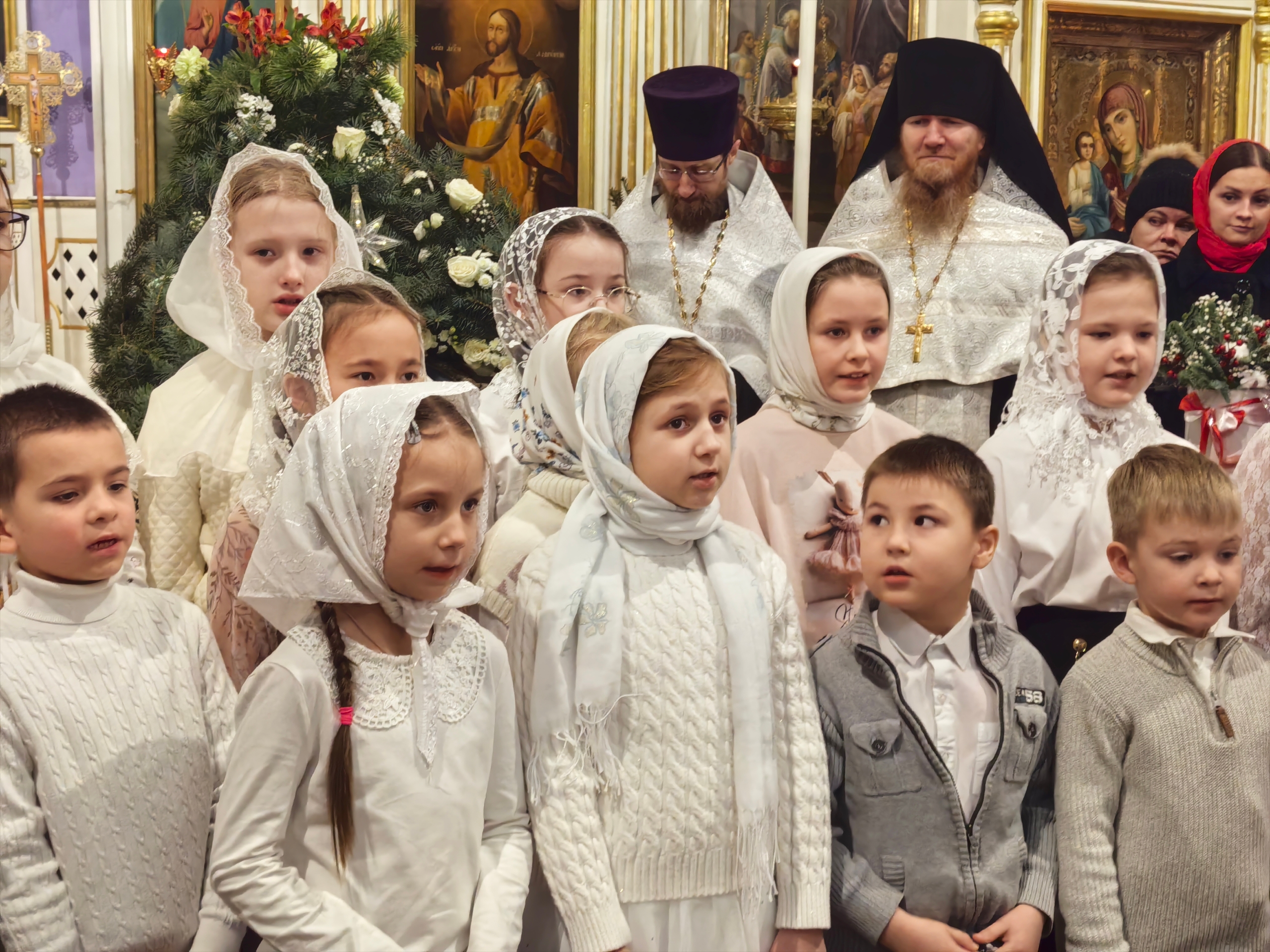 После богослужения воспитанники воскресной школы в честь святого Иоанна Кронштадтского и юные прихожане поздравили владыку с великим праздником стихами и Рождественскими песнопениями. Каждый ребенок получил из его рук сладкий подарок и тёплые благопожелания.