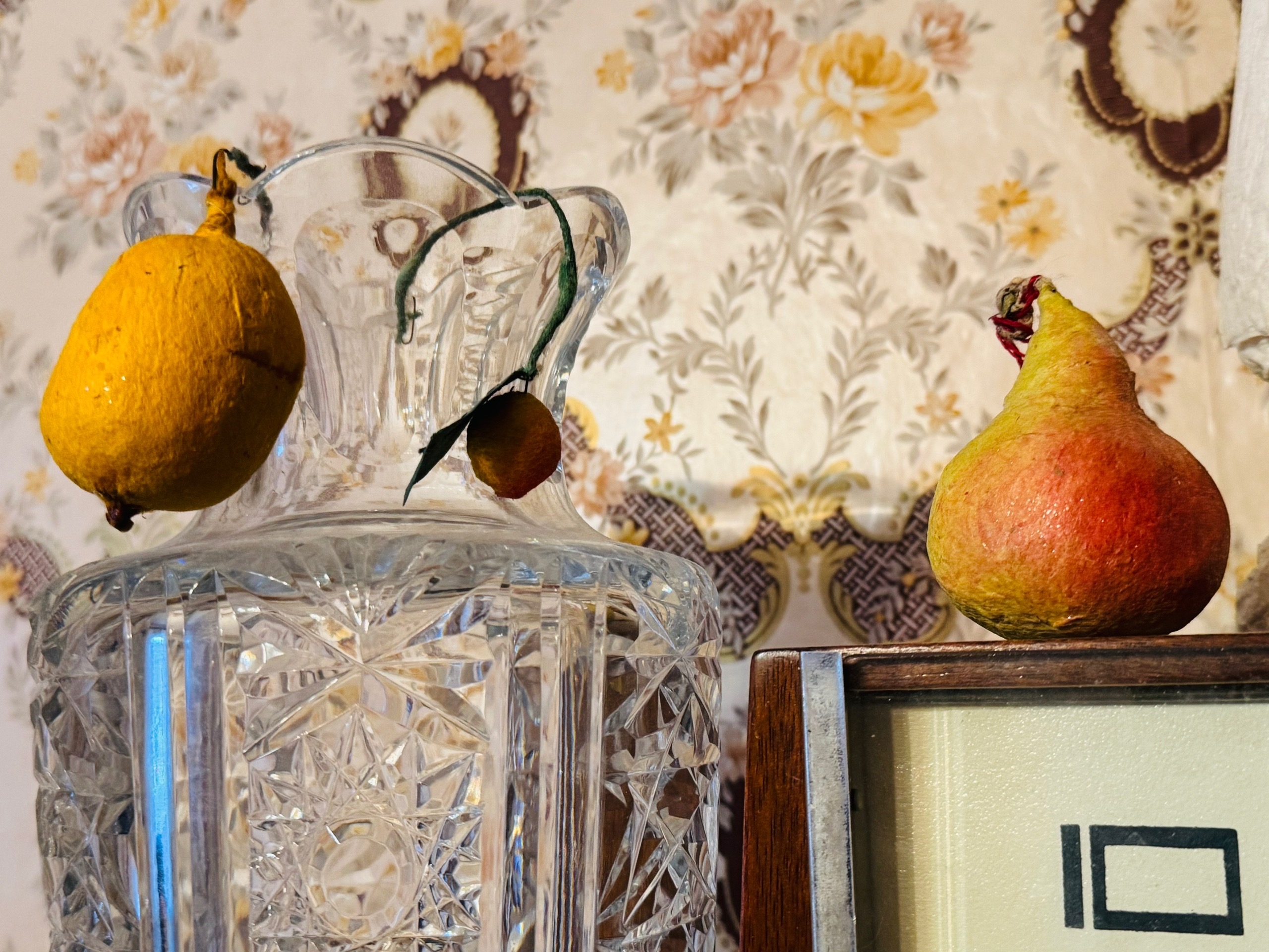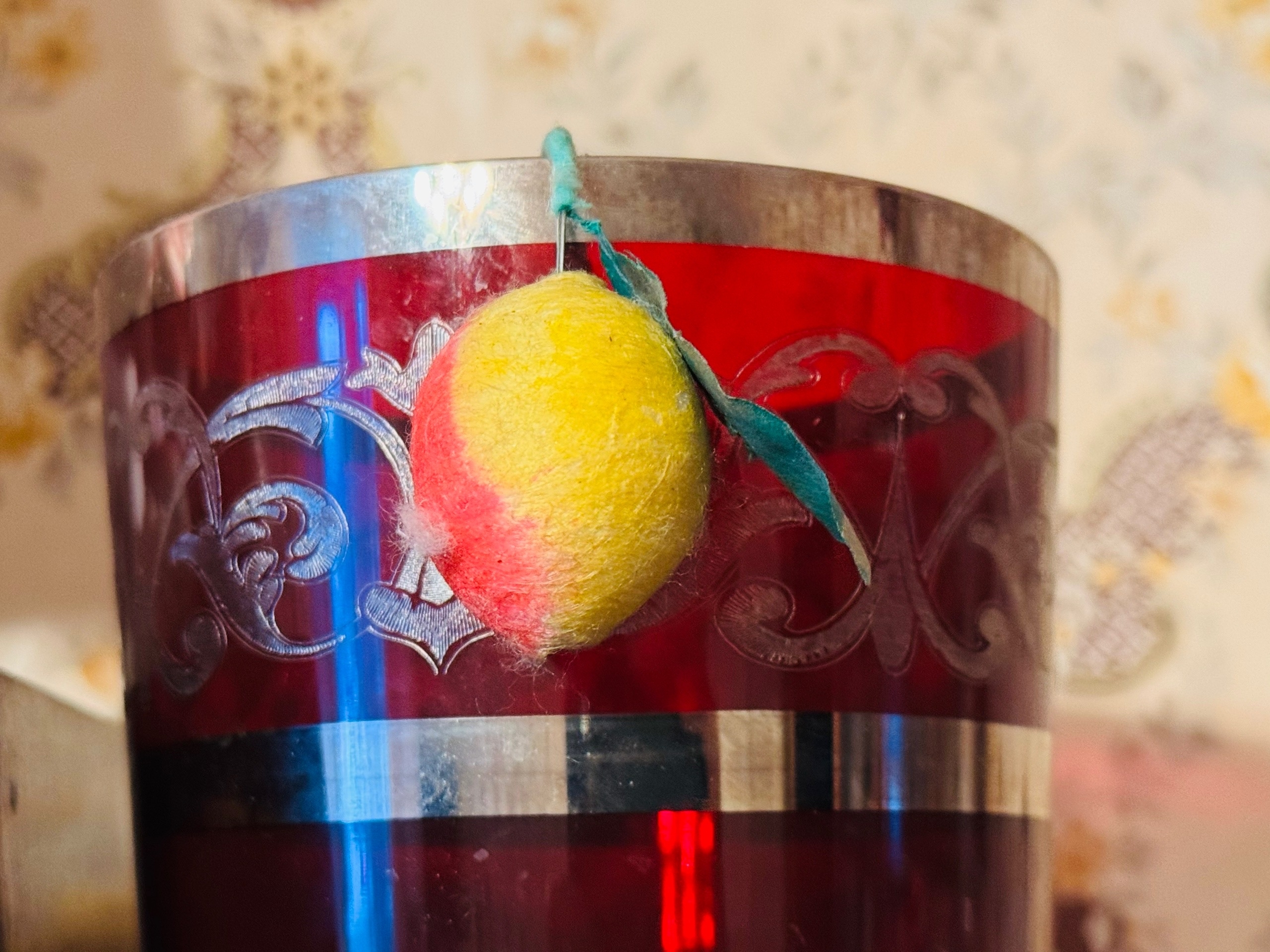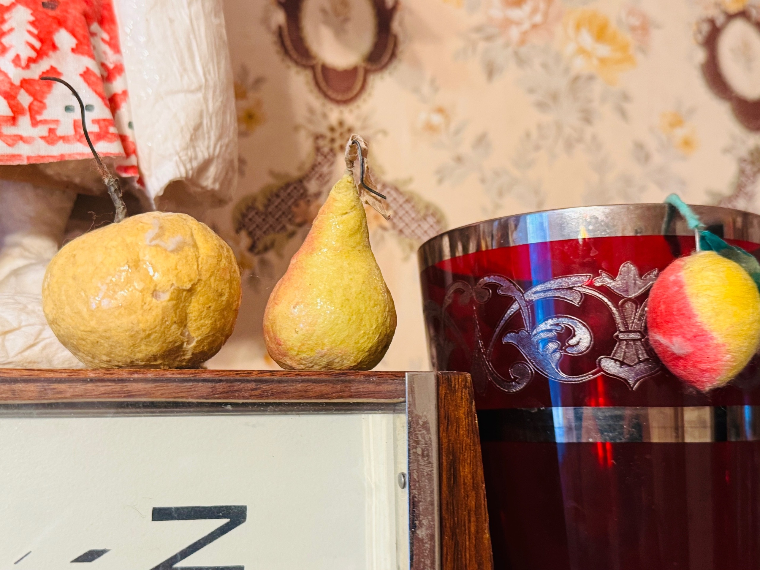 Лимон, груши и яблоки смотрятся так, как будто их недавно сняли с деревьев, помыли и приготовили на десерт. Они блестят, краски свежие и сочные. Сложно представить, что сделаны они из ваты, но это так.