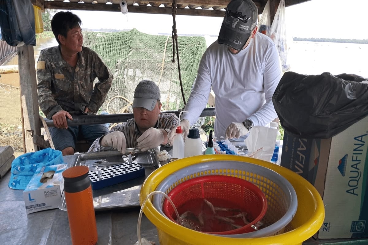 Старший научный сотрудник Виктор Воронин и его коллега Дмитрий Битютский вместе с вьетнамскими специалистами провели исследование в дельте реки с 19 ноября по 11 декабря 2025 года. В течение двух недель они ежедневно по 6-8 часов проводили ихтиологические съемки.