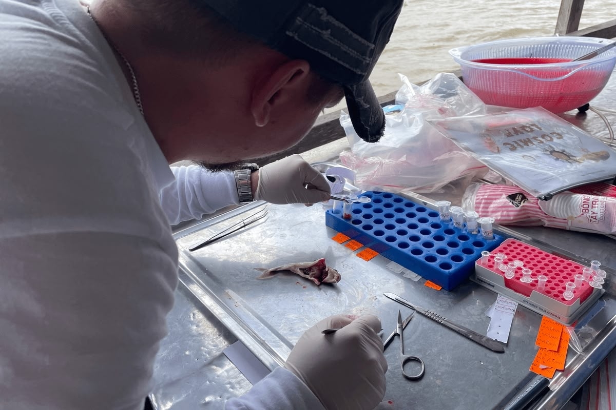 Ученые изучали наиболее распространенных и эндемичных рыб дельты Меконга, включая чернорукую райскую рыбу, различные виды сомов, анчоусовых и камбаловых рыб. Работу осложняли тропические условия: высокая температура воздуха, внезапные порывы ветра и сильные морские приливы.