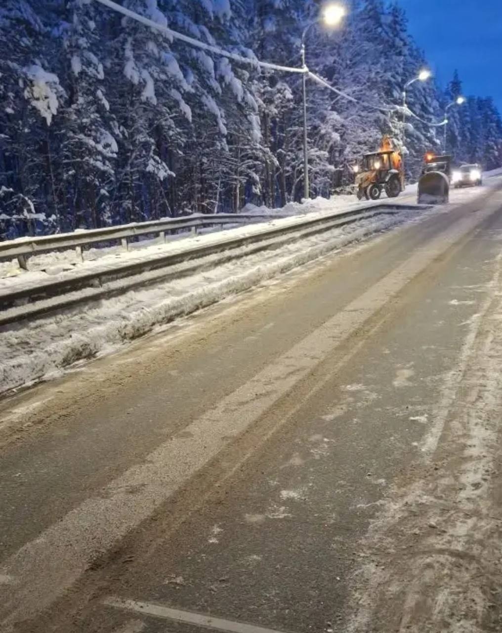Дорожники работают в усиленном режиме, расчищая региональные трассы и обрабатывая их противогололедными материалами. Аэропорт Петрозаводска работает в штатном режиме.