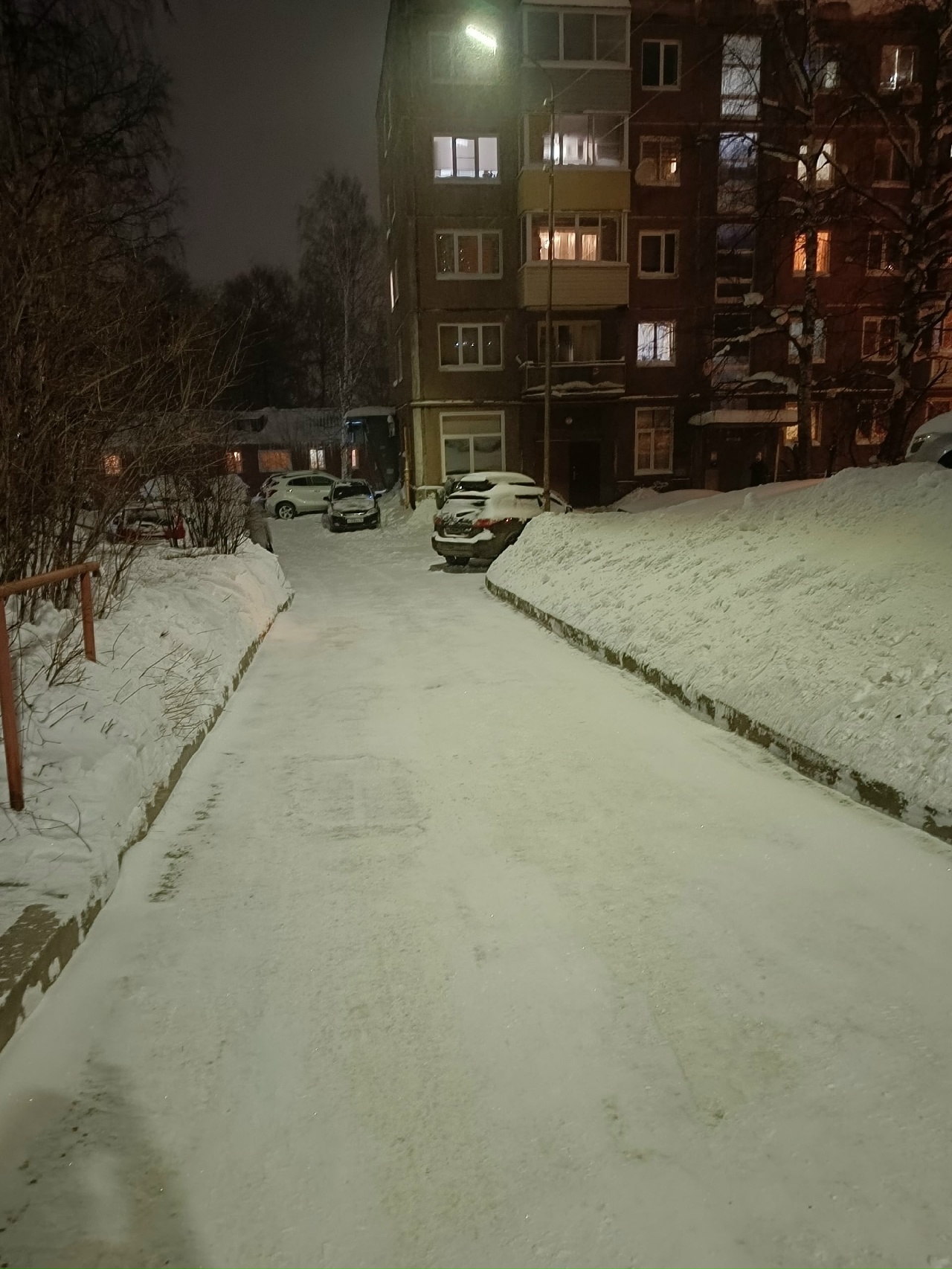 И таких примеров множество. Но, на целый город нашелся таки двор, где весь снег убран, несмотря на прошедший обильный снегопад.