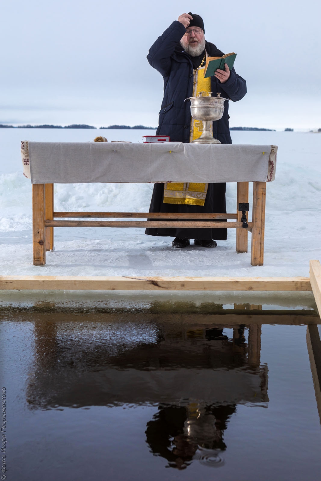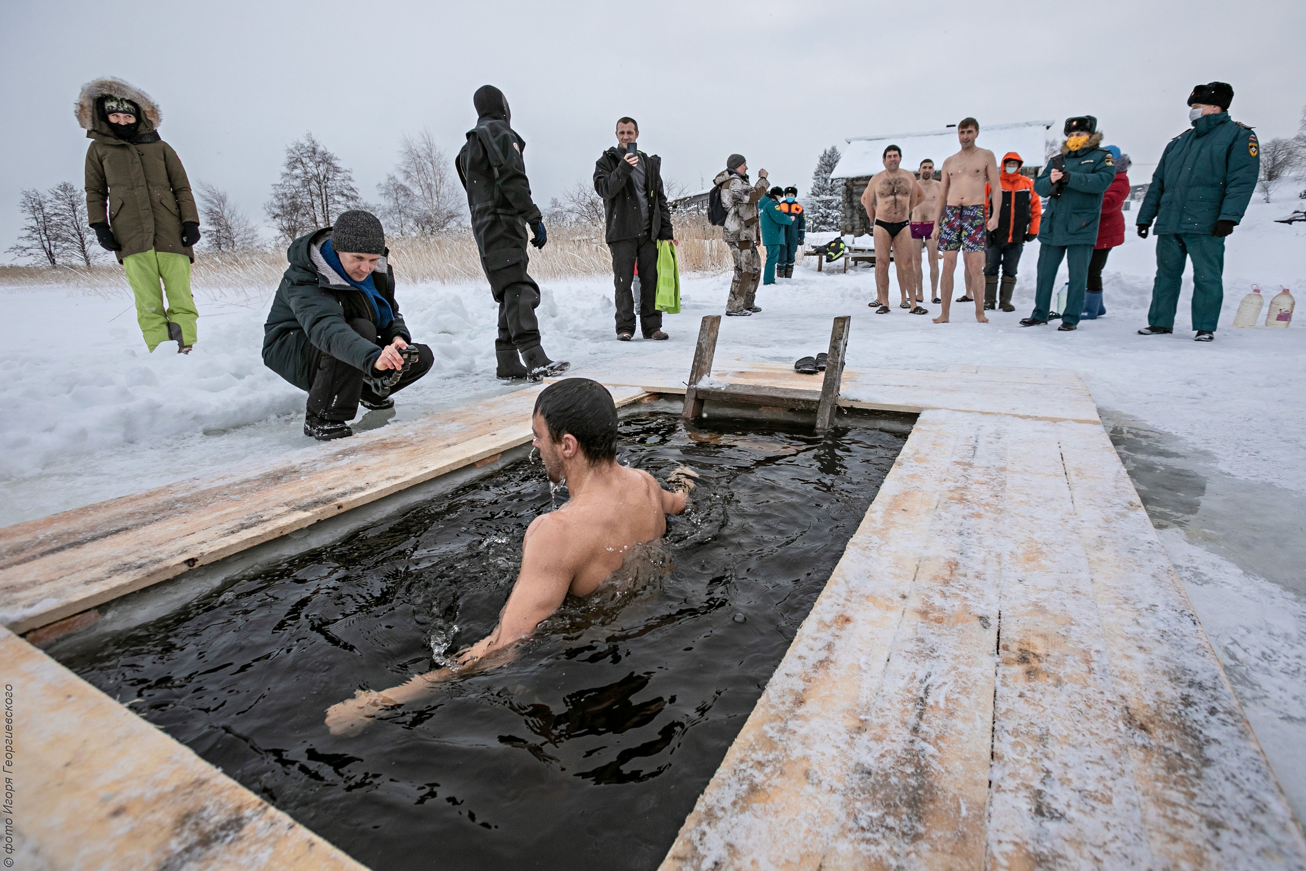 Программа праздника включает прогулку по заснеженному острову к знаменитым церквям Преображения Господня и Покрова Богородицы, омовение в проруби на берегу Онежского озера, набор святой воды, а также угощение горячим чаем и кашей.