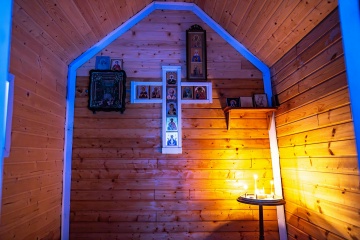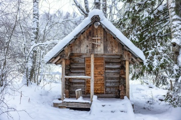 Из интересного, по следам на снегу видно, что в сильную метель и морозы, на крылечке часовни прячутся и отсиживаются зайцы. Вот такая получилась добрая часовня — и для людской души, и для убежища лесных обитателей.