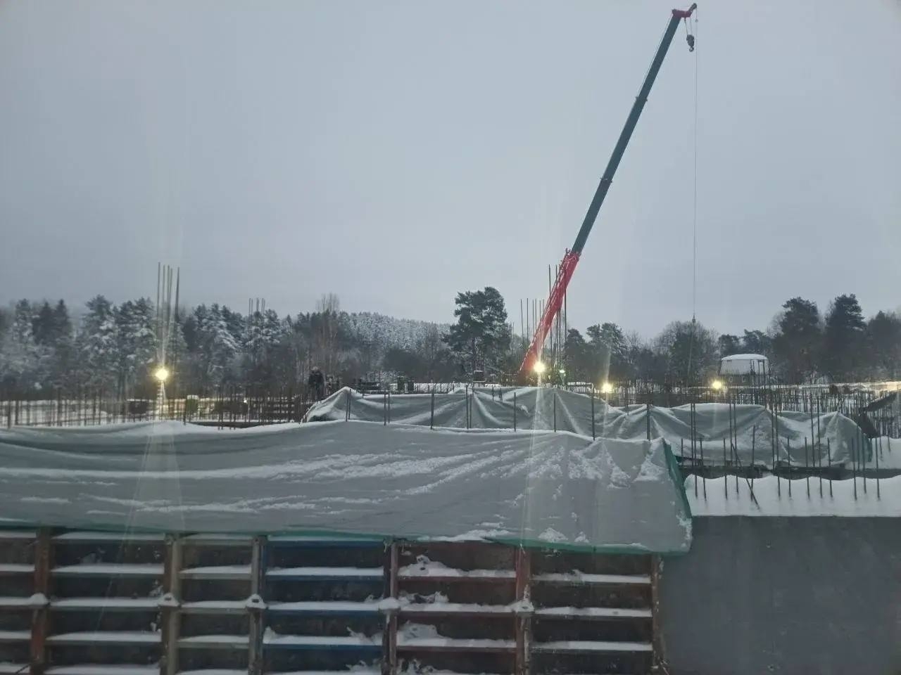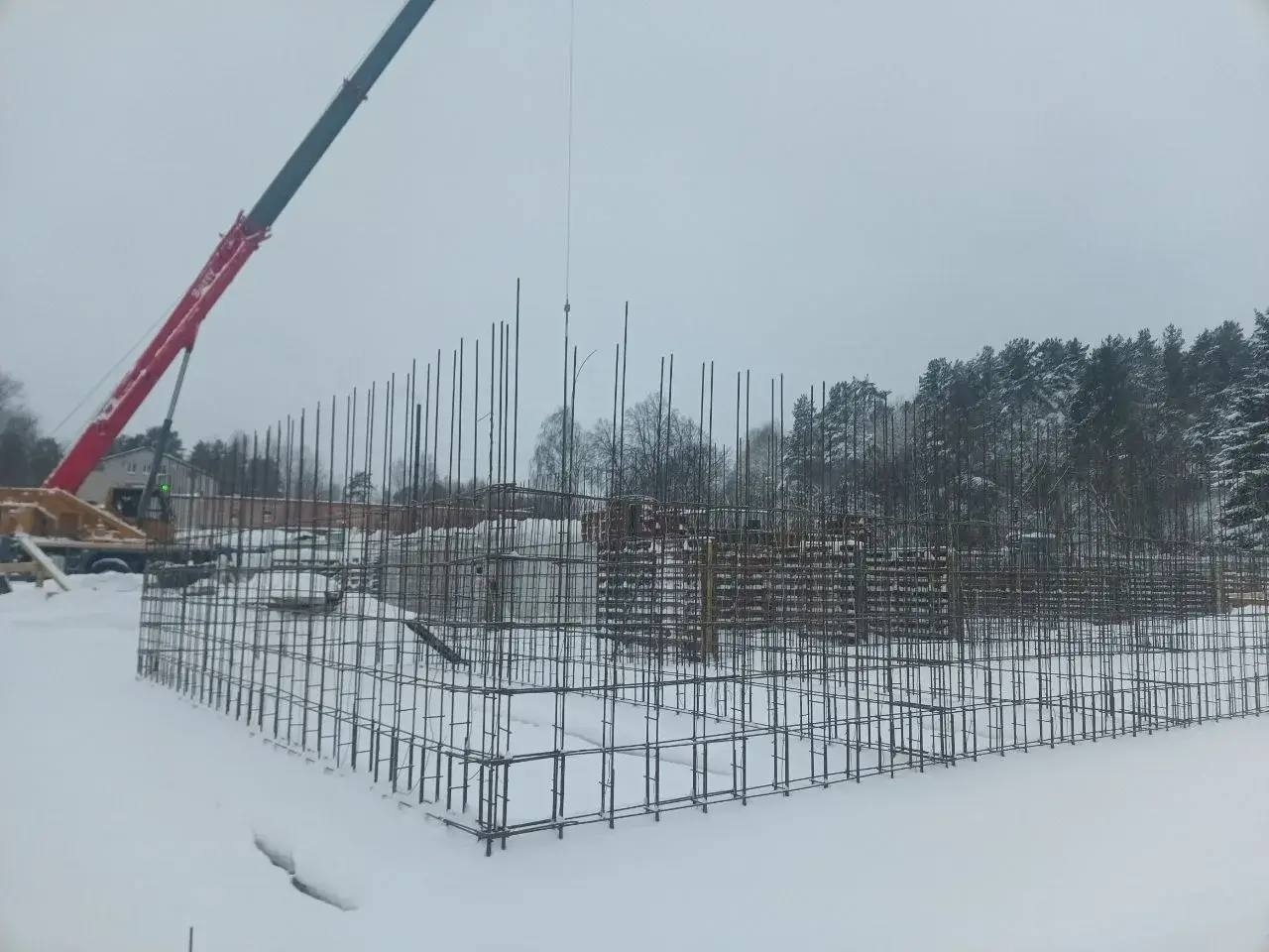 Сообщается, что здание будет состоять из трех блоков. В них разместятся ключевые учреждения для жителей: амбулатория, детский сад на 80 мест, дом культуры со зрительным залом на 100 мест и библиотека. Строители сейчас заняты на основном этапе — они возводят стены цокольного этажа и проводят бетонирование плиты перекрытия первого этажа. Эти работы ведутся в тех блоках, где в будущем расположатся дом культуры и детский сад.