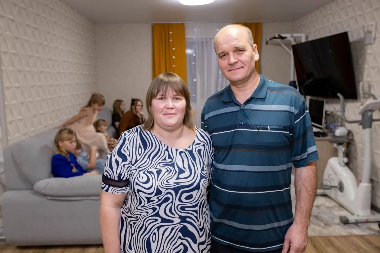 Супруги Иван Владимирович и Людмила Владимировна рассказали, что в этом году они отметят 28-ю годовщину брака. У них восемь дочерей и четыре сына. Старшей Дарье 27 лет, и она сама уже многодетная мама, а младшей Анастасии всего 4 года. На прошлой неделе женили старшего сына. Когда вся семья с детьми и внуками собирается вместе, их уже 19 человек.