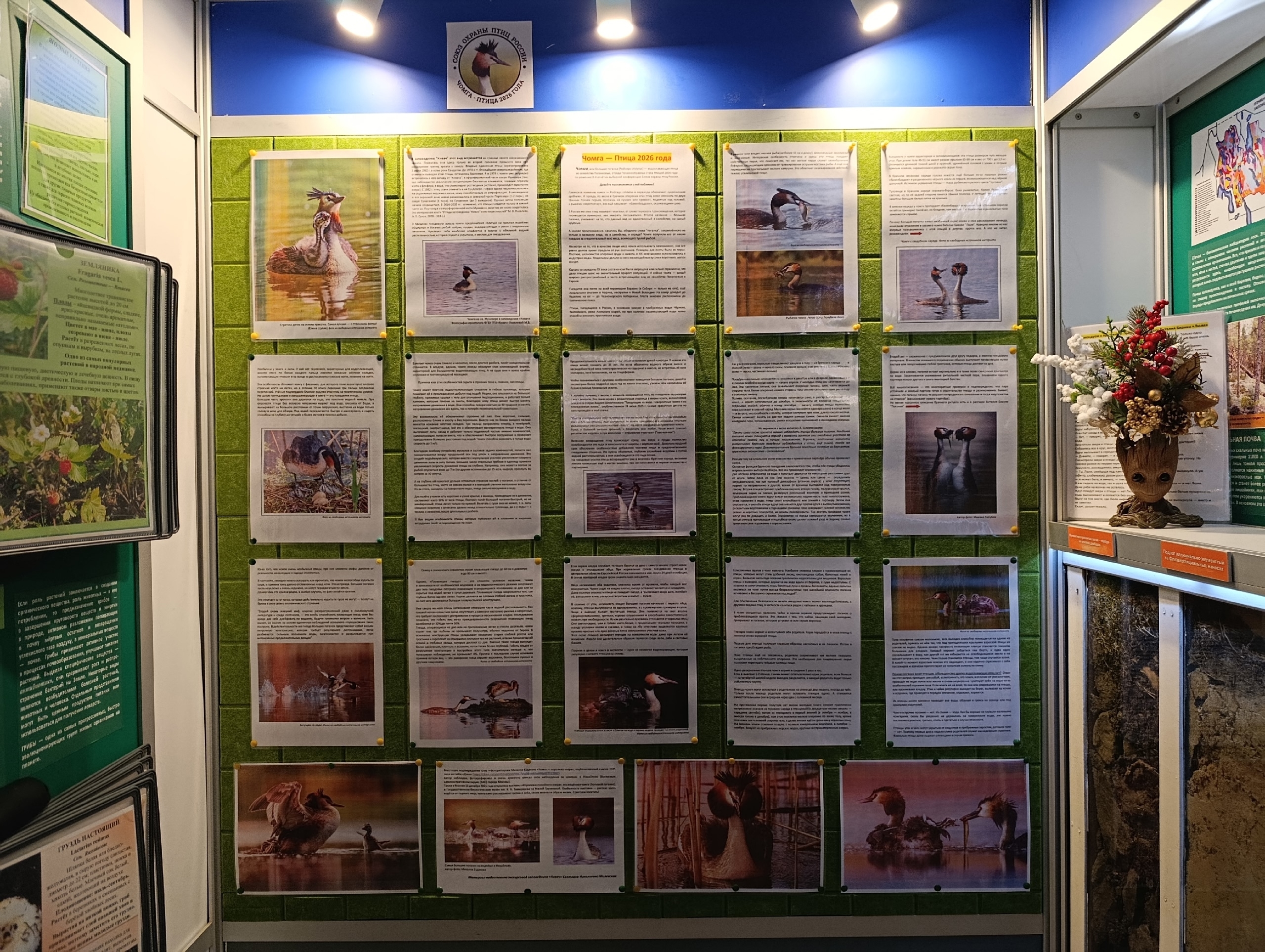 Стенд с интересными фактами о чомге подготовили специалисты отдела экологического просвещения «Кивача». Посетить музей можно бесплатно при наличии входного билета на территорию заповедника. Экспозиция рассказывает о жизни удивительной птицы из семейства Поганковых.