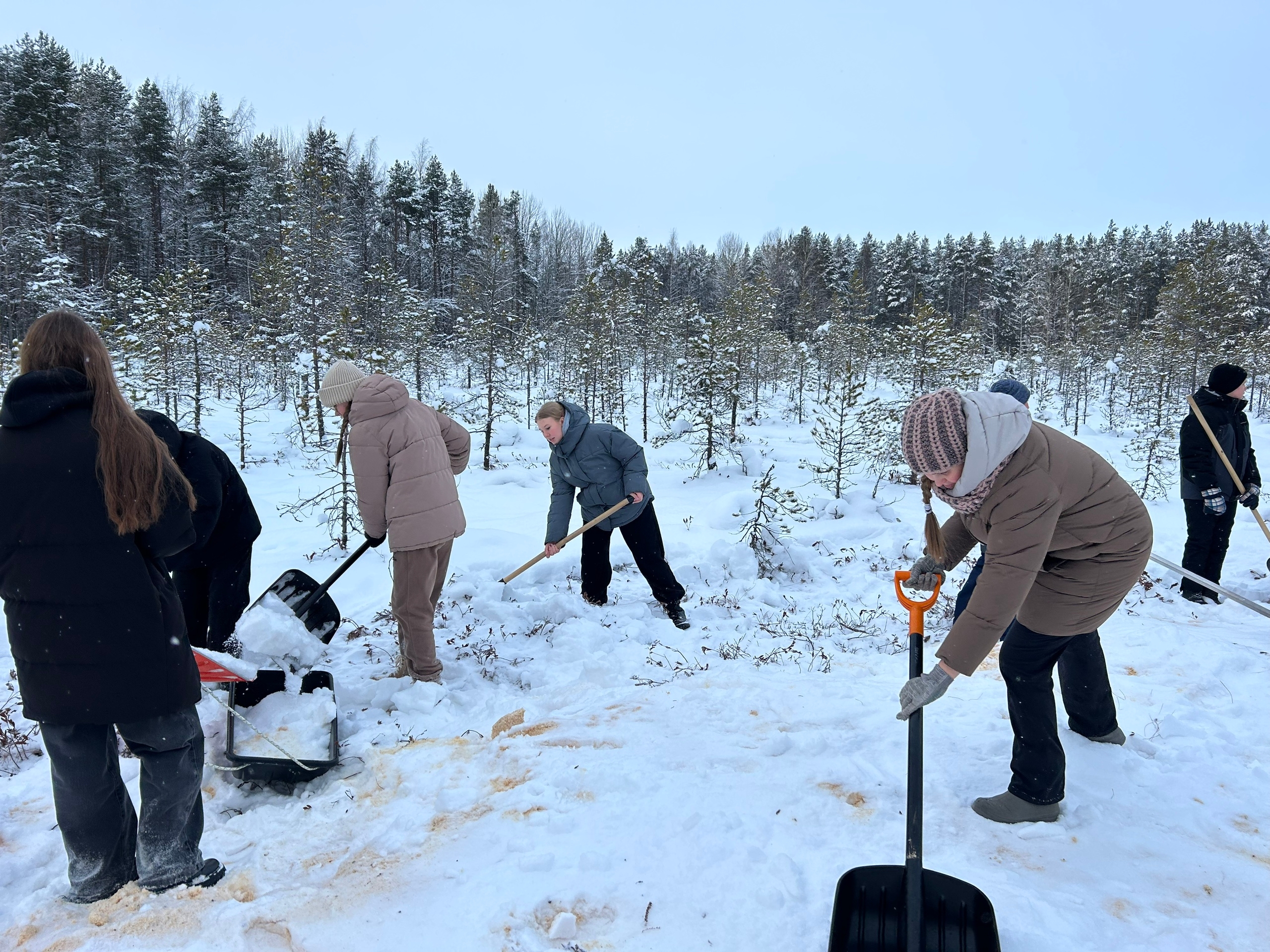 Участники — взрослые, дети и целые семьи — подрезали кустарник на болотистом участке, спилили крупные заросли у стартовой поляны и накидали снег на трассу. После работы все вместе покатались на снегоходе, а затем за чаем с печеньем обсудили планы: новые тропинки, соревнования и регулярные встречи на свежем воздухе.