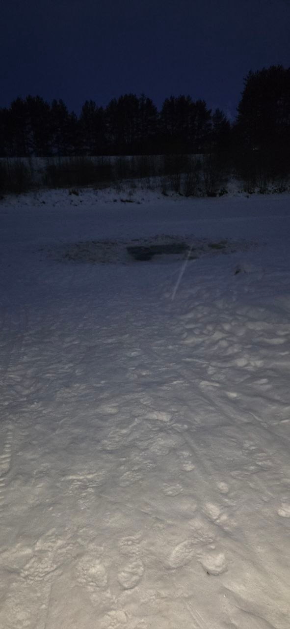 Неизвестные сделали прорубь на спуске к реке в конце Сосновой улицы в селе Видлица. Очевидцы разместили фотографии в паблике Подслушано в Видлице.