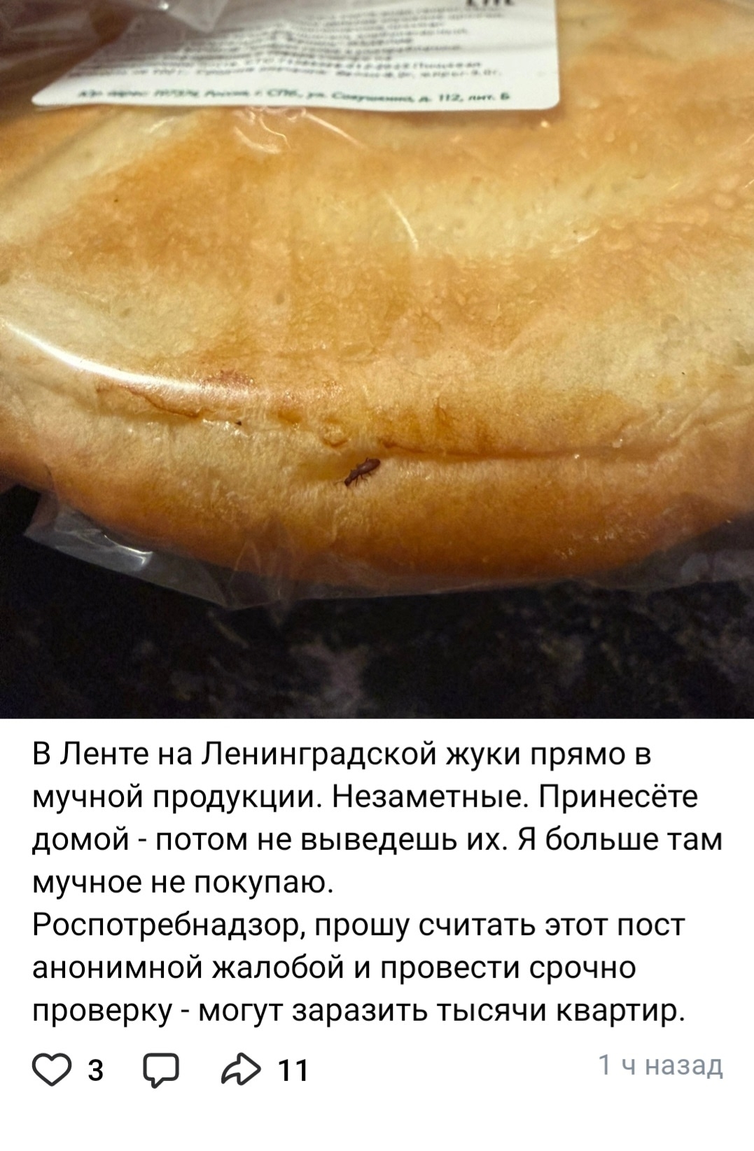 «На днях боролась с такими жуками, появились в крупах. Обычно крупу беру как раз в «Ленте»… Непросто их вывести, пришлось выбросить все открытые упаковки. Но и в закрытых они бывают! С магазинов их и приносим. Совет из статей интернета: после покупки крупу пару дней подержать в морозилке для профилактики…», — написали авторы поста.