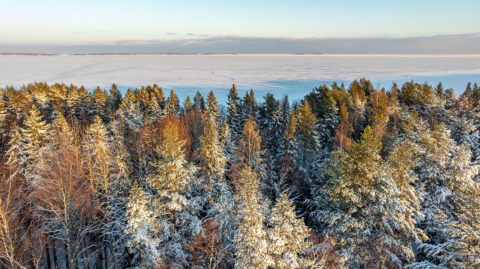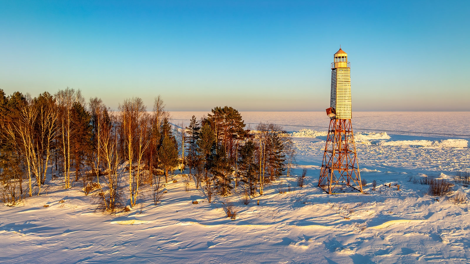 Главный «производитель» снега, Онежское озеро, успокоилось и поддалось чарам зимы. По словам фотографа Ильи Тимина, парящая вода теперь заперта до весны в ледяные оковы.
