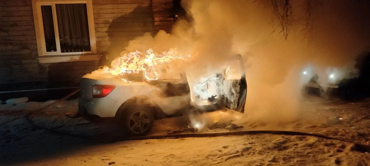 Напомним, пожар в легковом автомобиле произошел поздно вечером в четверг, 29 января, у дома №20 на улице Фабричная в поселке Хелюля.