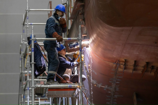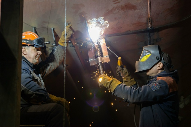 Руководители завода рассказали, что в цехах внедряется цифровизация и импортозамещение. При изготовлении элементов судовых конструкций используют уникальную отечественную, пока первую и единственную в России установку гибридной лазерно-дуговой сварки. Она позволяет в разы повысить производительность работ.