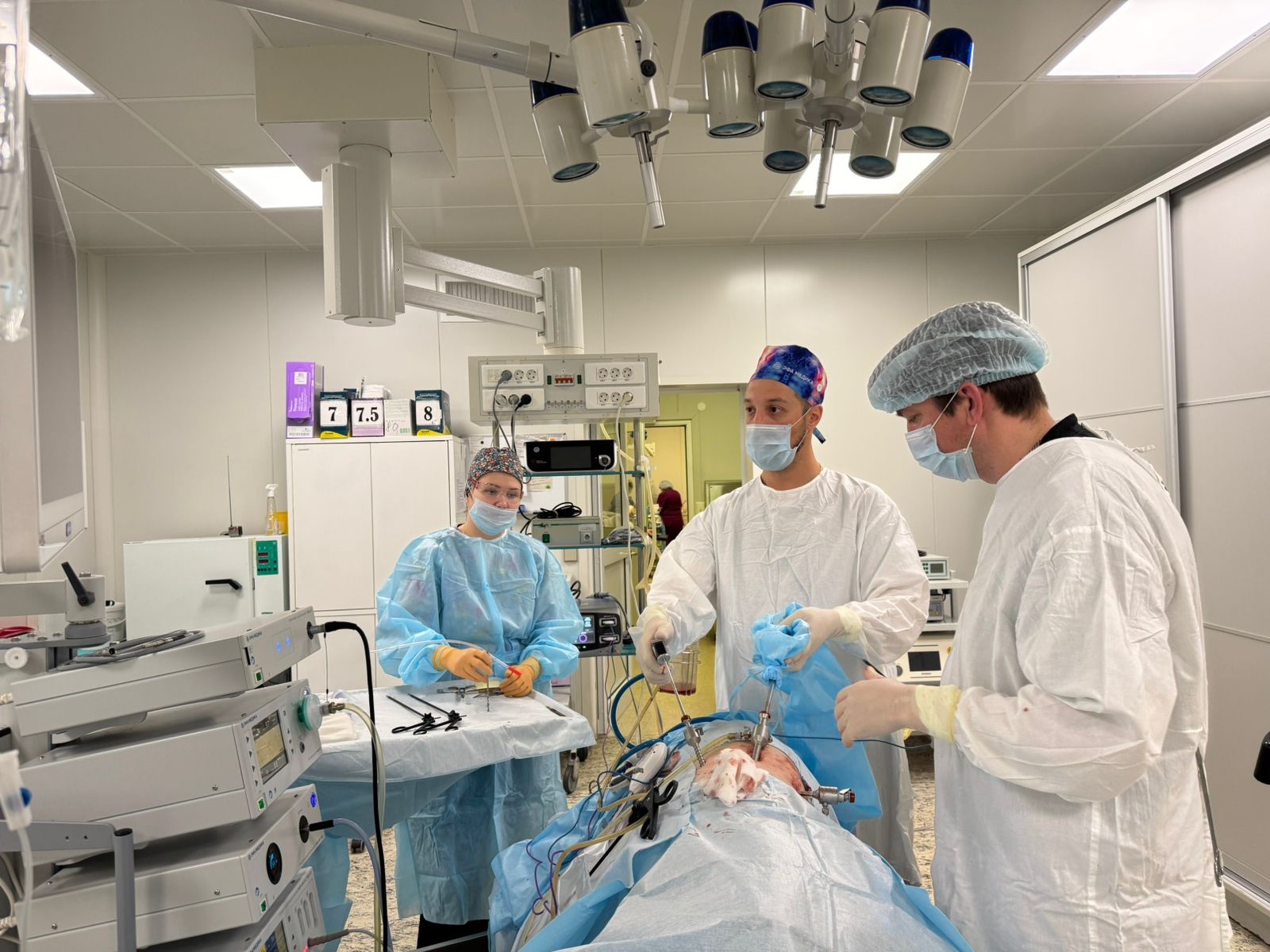 Он отметил, что работает в очень сплоченной команде, куда входят хирург ассистент Малышев Евгений Викторович. Операционная медсестра — Горина Юлия Александровна. Анестезиолог — Дороженко Андрей Михайлович, анестезист — Ерюшкина Тамара Владимировна.