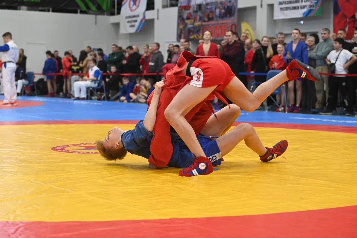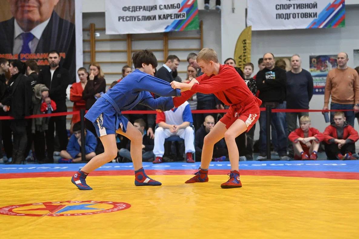Состязания проходят сегодня на площадке ФОКа «Газпром» в Петрозаводске. За победу борются самбисты в возрасте от 12 до 16 лет.