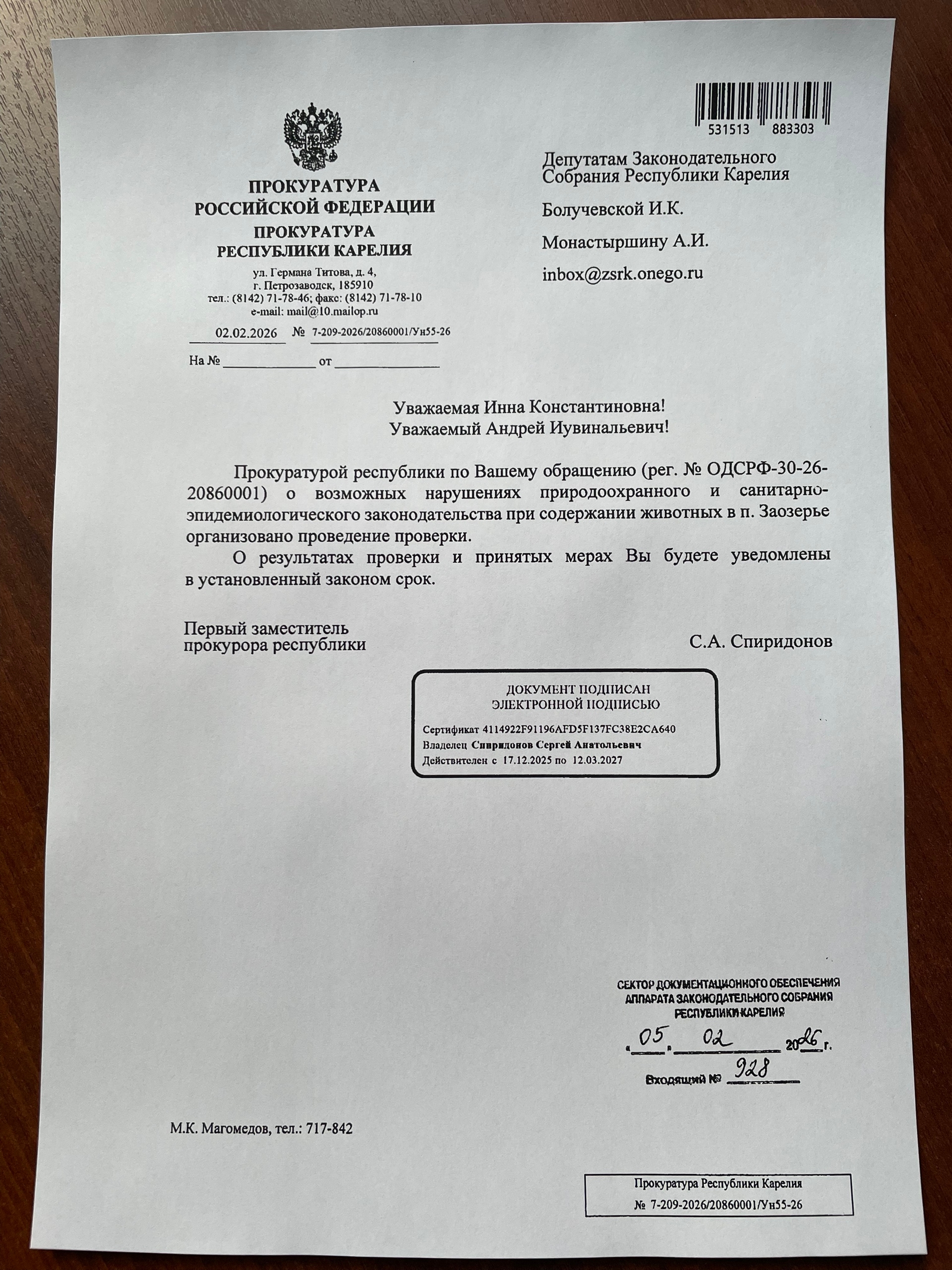 После обращения депутатов Заксобрания Карелии в региональную прокуратуру, на ферме в Заозерье проведут проверку. Об этом сообщил на своей странице Зампредседателя комитета Заксобрания РК VII созыва по агропромышленной политике, природопользованию и экологии Андрей Монастыршин.