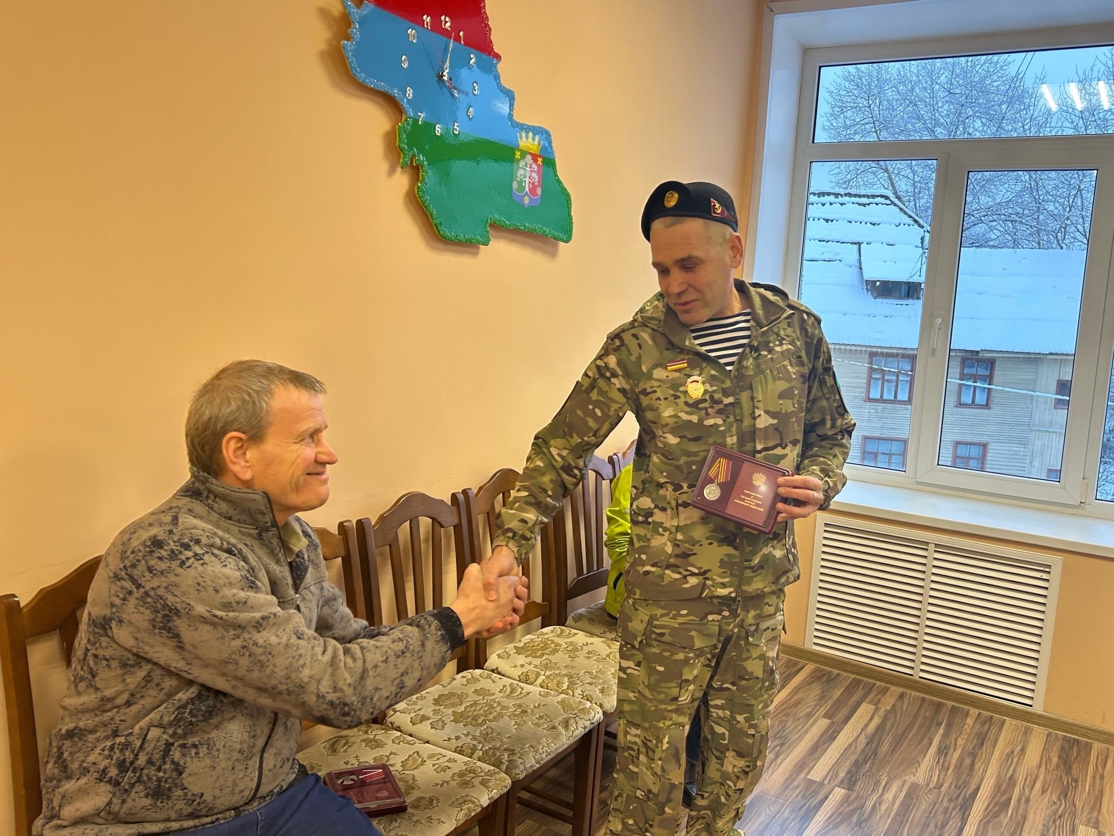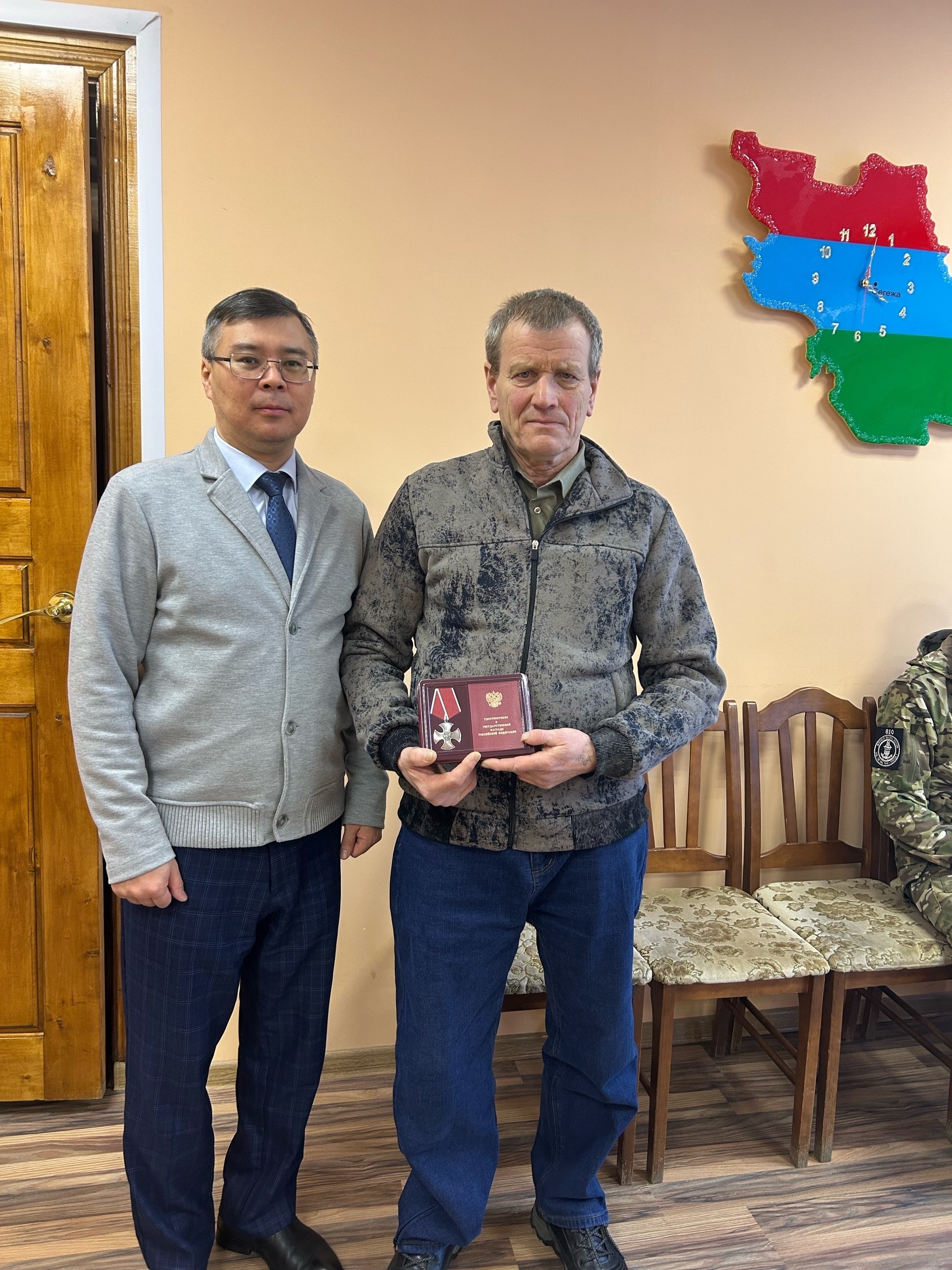 рядовой Евгений Иванович Щепетов награжден Медалью «За храбрость» II степени»старший прапорщик Сергей Николаевич Волков награжден орденом Мужества. Самые искрение поздравления и пожелания здоровья Евгению Ивановичу и Сергею Николаевичу. Уверен, это заслуженные награды! Благодарю за службу и помощь в защите своих соотечественников», — сообщил Рашид Бескембиров.