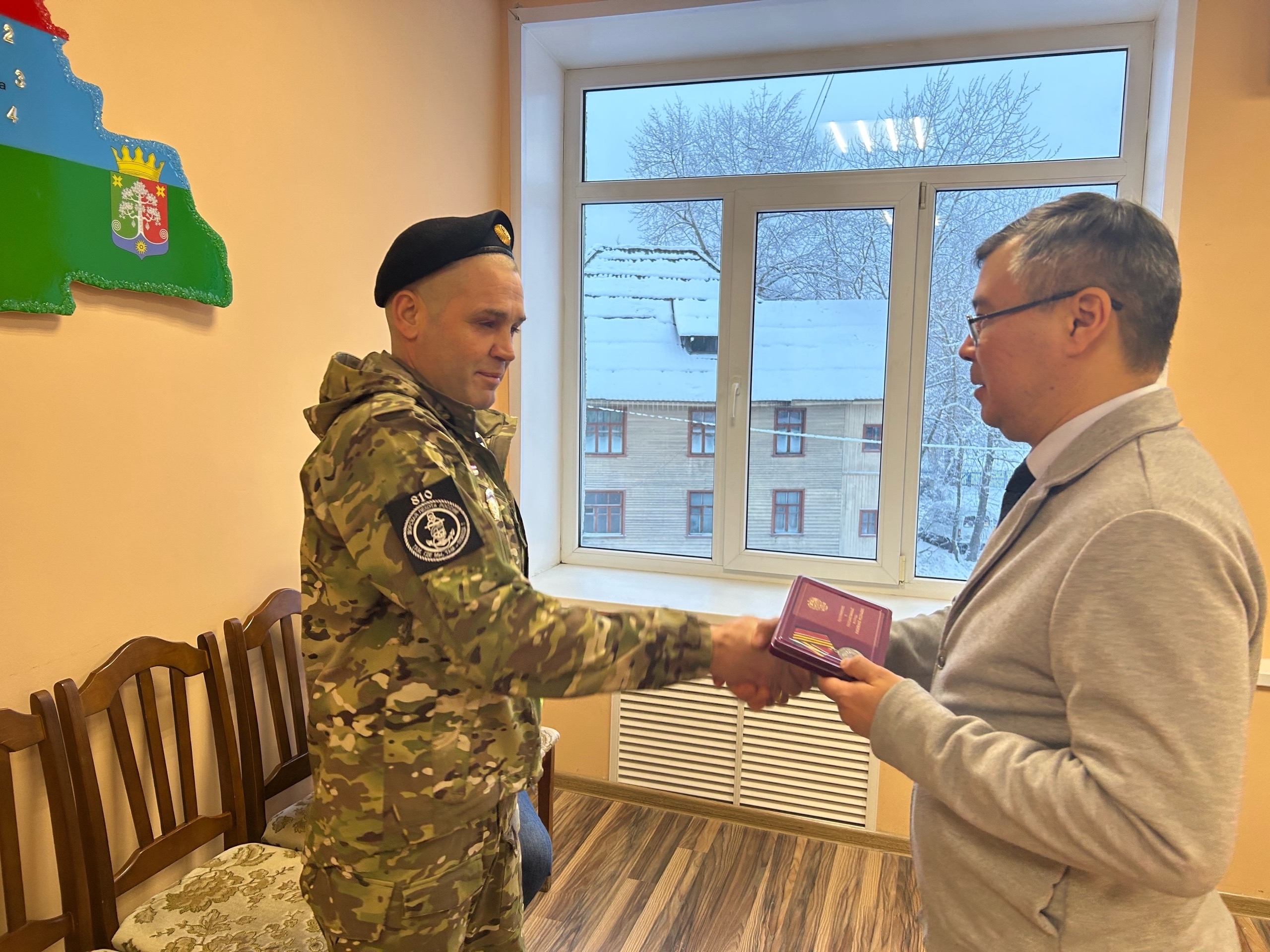 Глава Сегежского округа Рашид Бескембиров вручил высокие государственные награды участникам СВО за проявленные отвагу и мужество в ходе выполнения боевых задач.