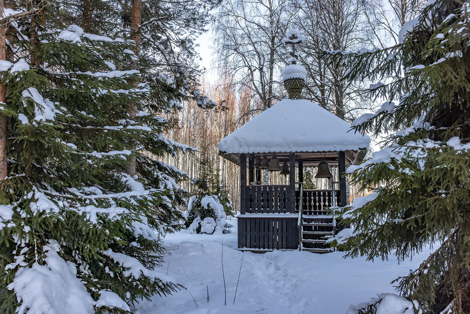 Карельский фотограф Илья Тимин поделился живописными кадрами природы на территории Сяндемского Успенского женского монастыря. Солнечная погода, белый искрящийся снег и мохнатые ели — все это пронизано неповторимым северным безмолвием. Умиротворение и тишина позволили ему ощутить особую духовную атмосферу.