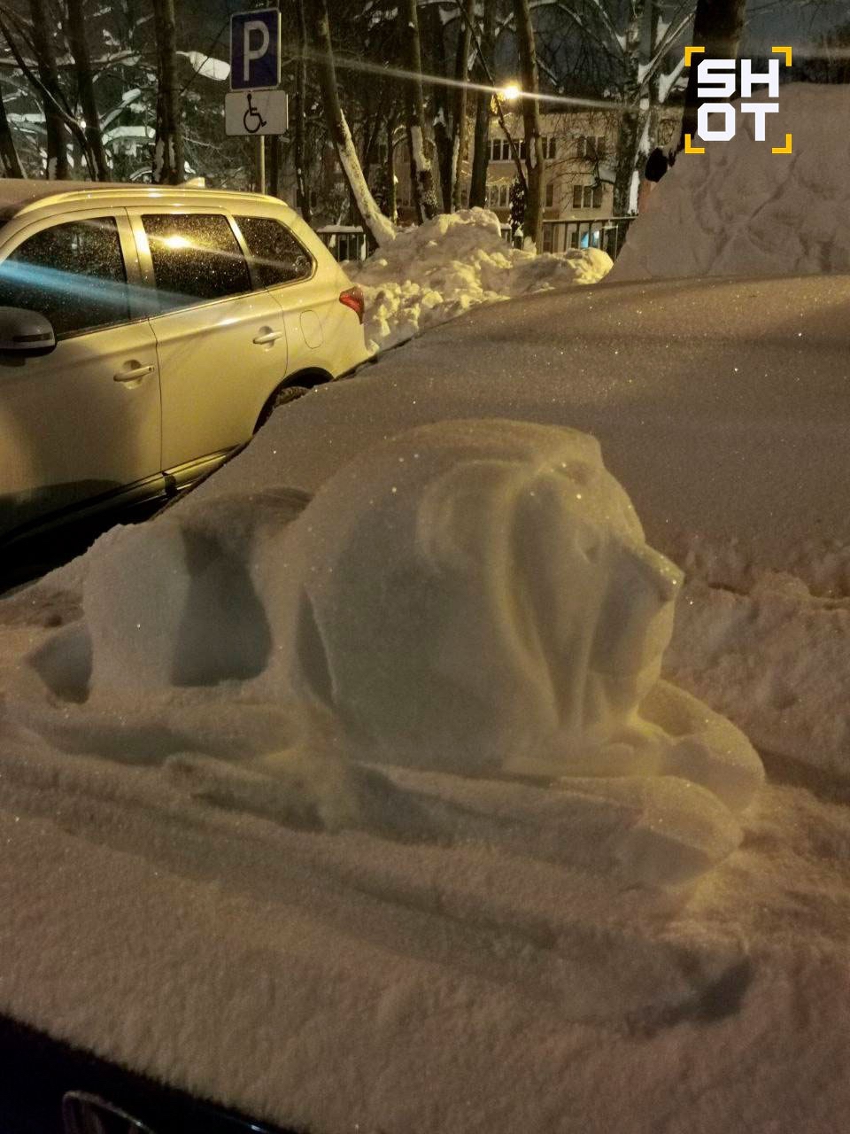 Снежный зоопарк внезапно появился в московском районе Коньково. Местный житель превратил сугробы на парковке в произведения искусства, рассказал один из местных Telegram-каналов.