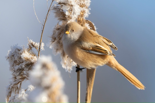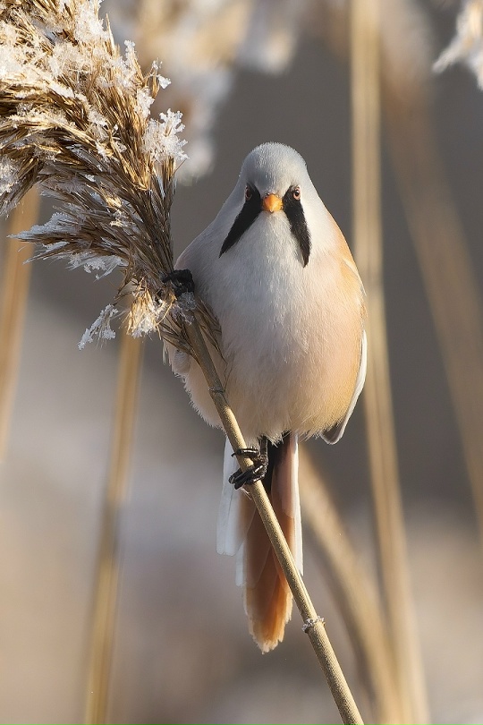 А вот невеста выглядит намного скромнее: как и положено самкам, усов у неё нет. Пары эти птицы образуют на всю жизнь. Парадокс в том, что усатая синица — на самом деле никакого отношения к семейству синицевых не имеет. Этот вид долгое время вводил в заблуждение учёных. По современной классификации она причислена к другому птичьему семейству — суторовые. Но, тем не менее, сохранила слово «синица» в своём названии, — написал Павел Гладков.