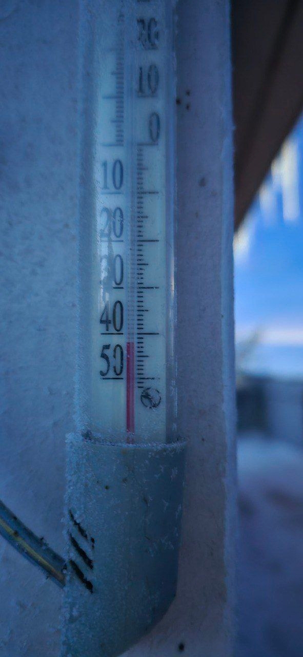 На фото — термометр показывает 42°С ниже нуля.