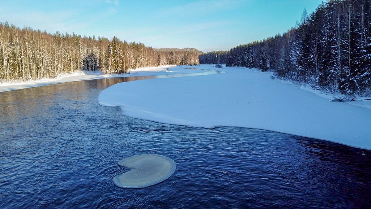 Проплывая через незамерзающие пороги, ледяное сердце подчеркнуло удивительный контраст карельской зимы, отметили в Сети.