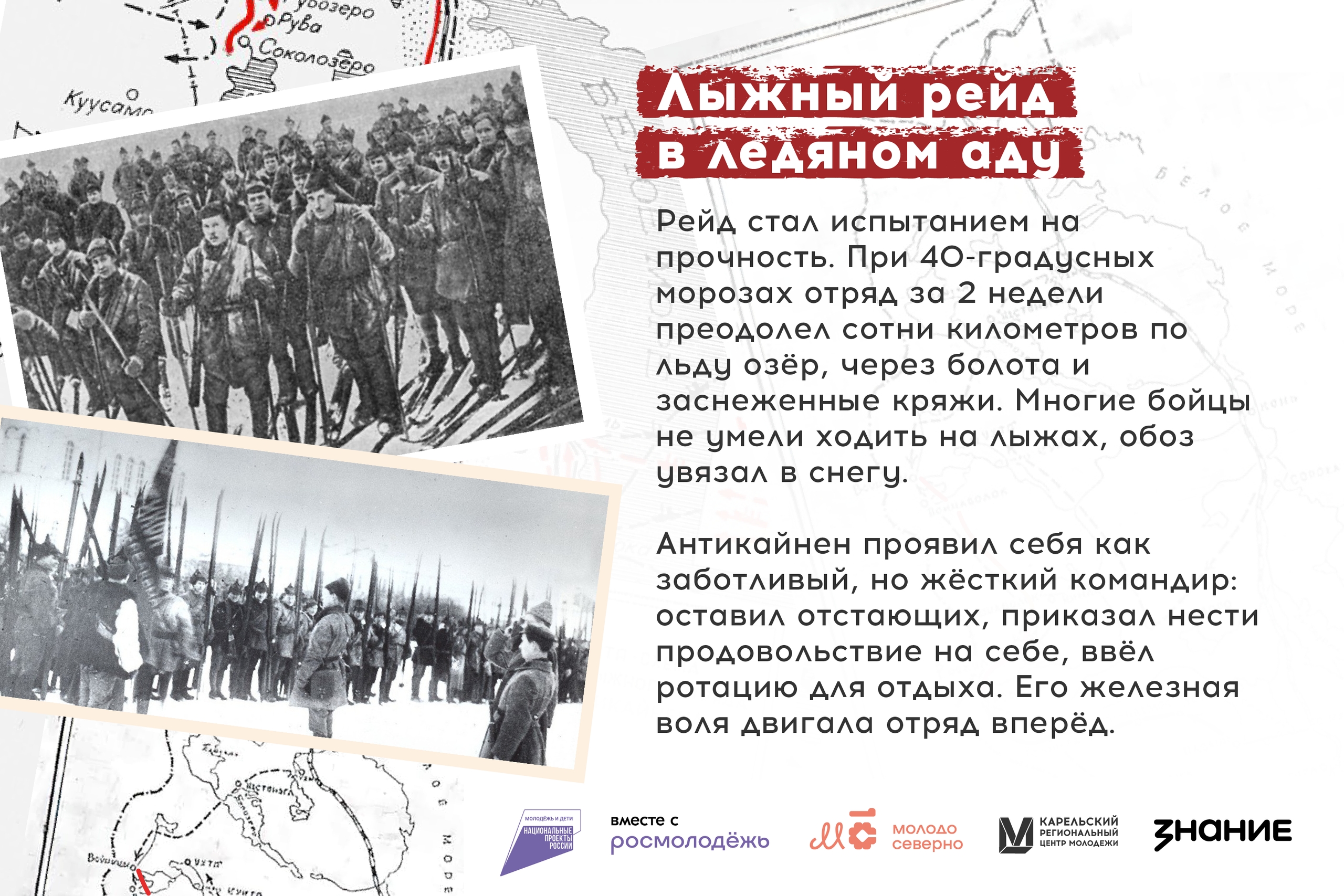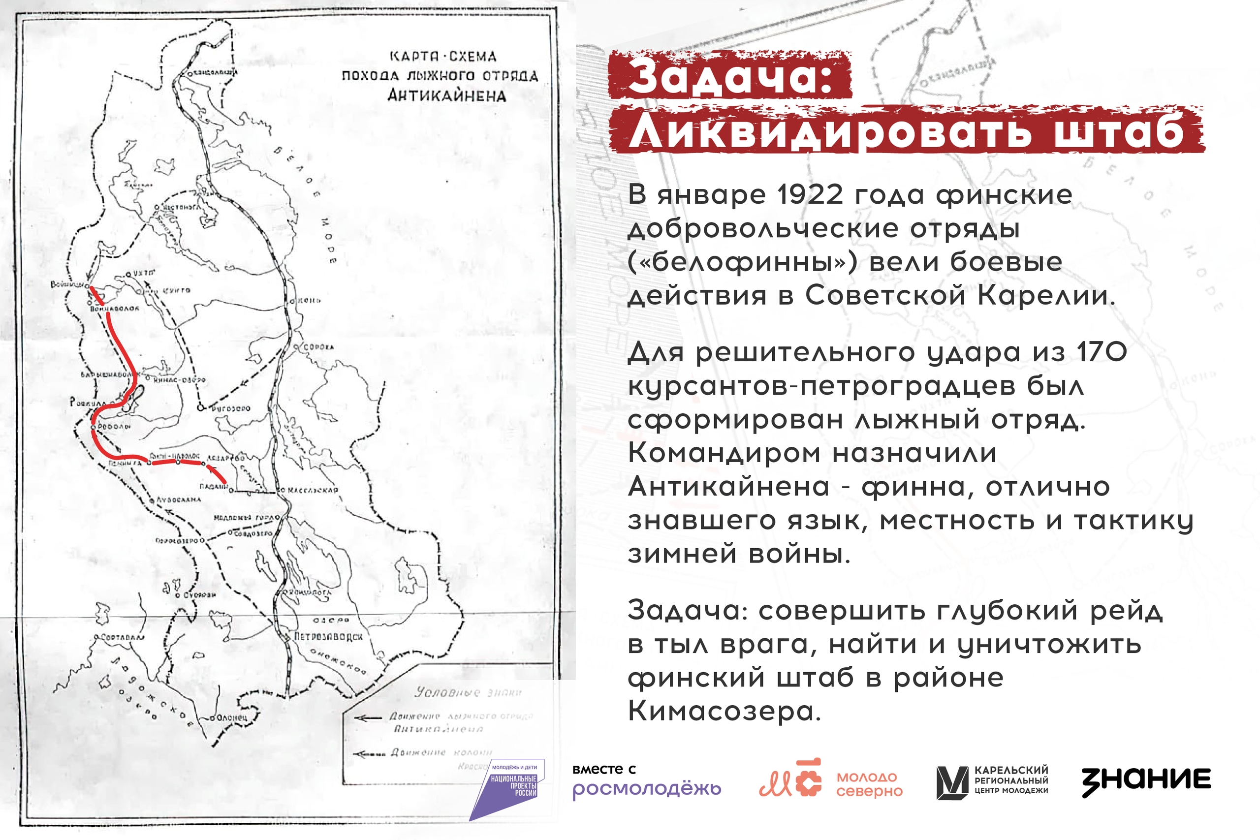 В школах округа пройдут просветительские уроки о маршруте, пройденном бойцами под руководством Тойво Антикайнена. Кульминацией станут ежегодные двухдневные соревнования «Лыжня Антикайнена 2026», которые состоятся 27-28 февраля в деревне Кимасозеро и на базе Ледмозерской школы. В программе: 12-километровая лыжня, «Зарница 2.0», «Вызов Первых» и соревнования по биатлону. Проект реализуется при поддержке нацпроекта «Молодежь и дети».