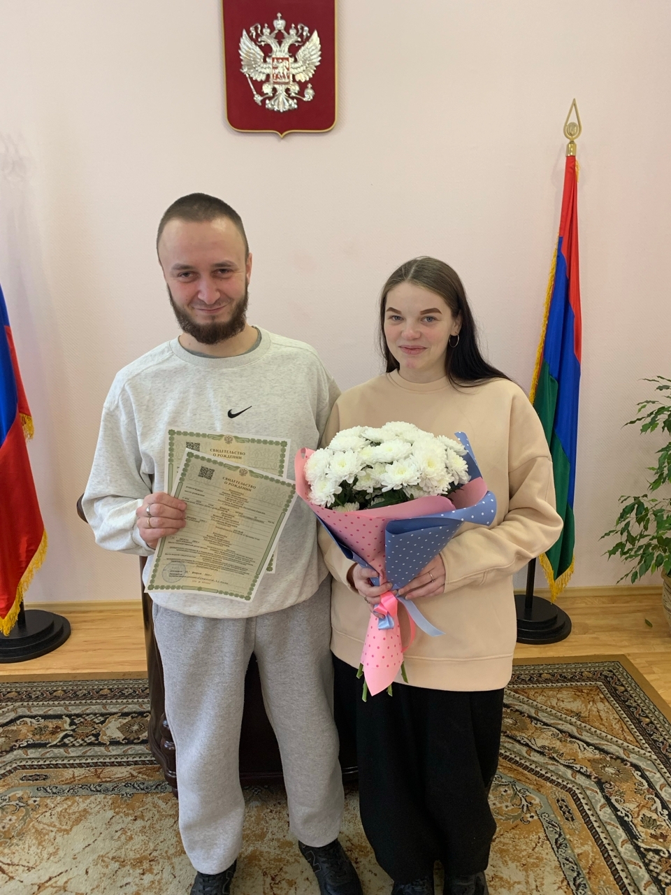 В местном загсе родителям торжественно вручили первые документы на новорождённых. С важным событием семью поздравил исполняющий обязанности заместителя главы Сергей Котловский. Он пожелал малышам здоровья, благополучия и счастливого будущего.
