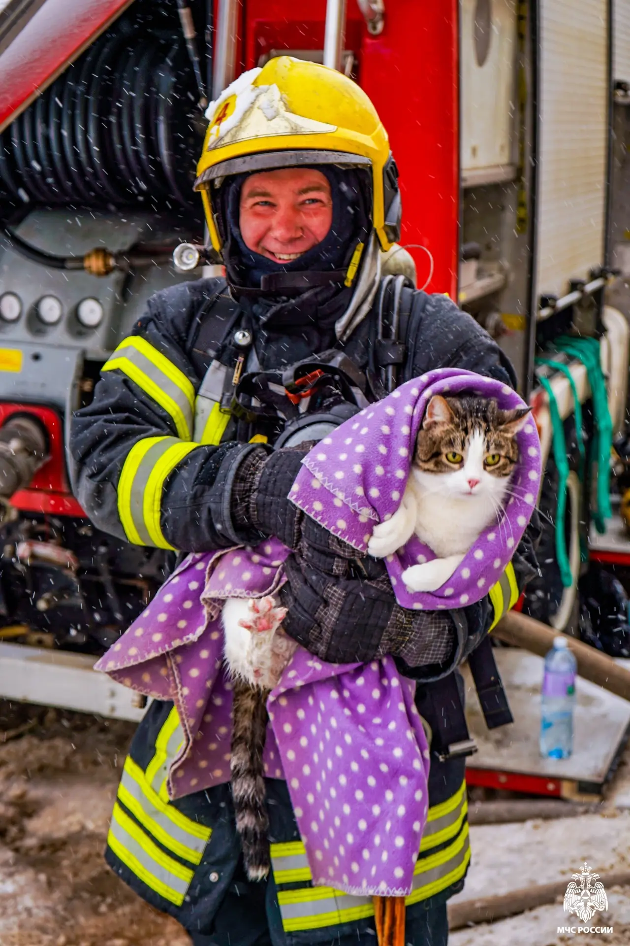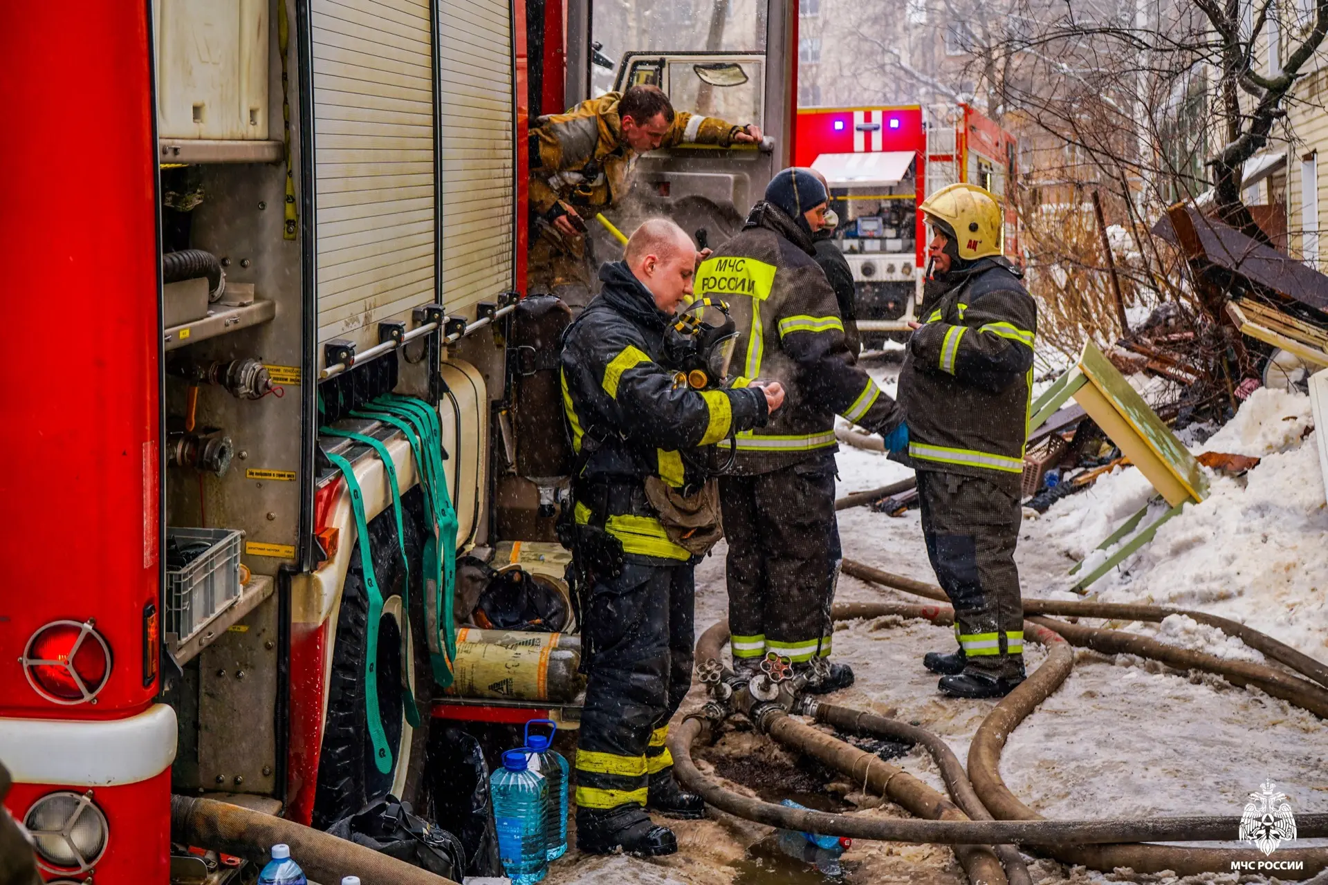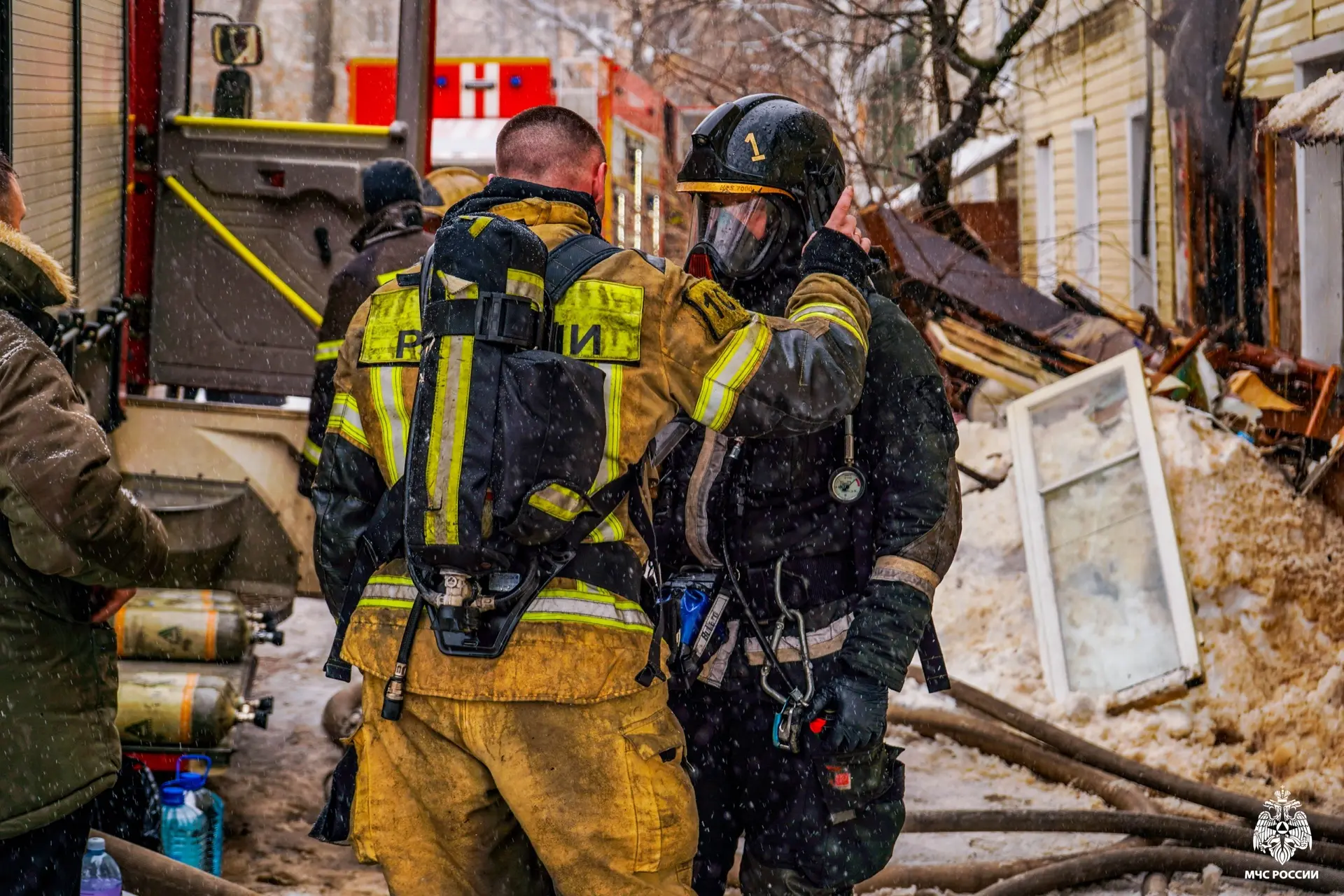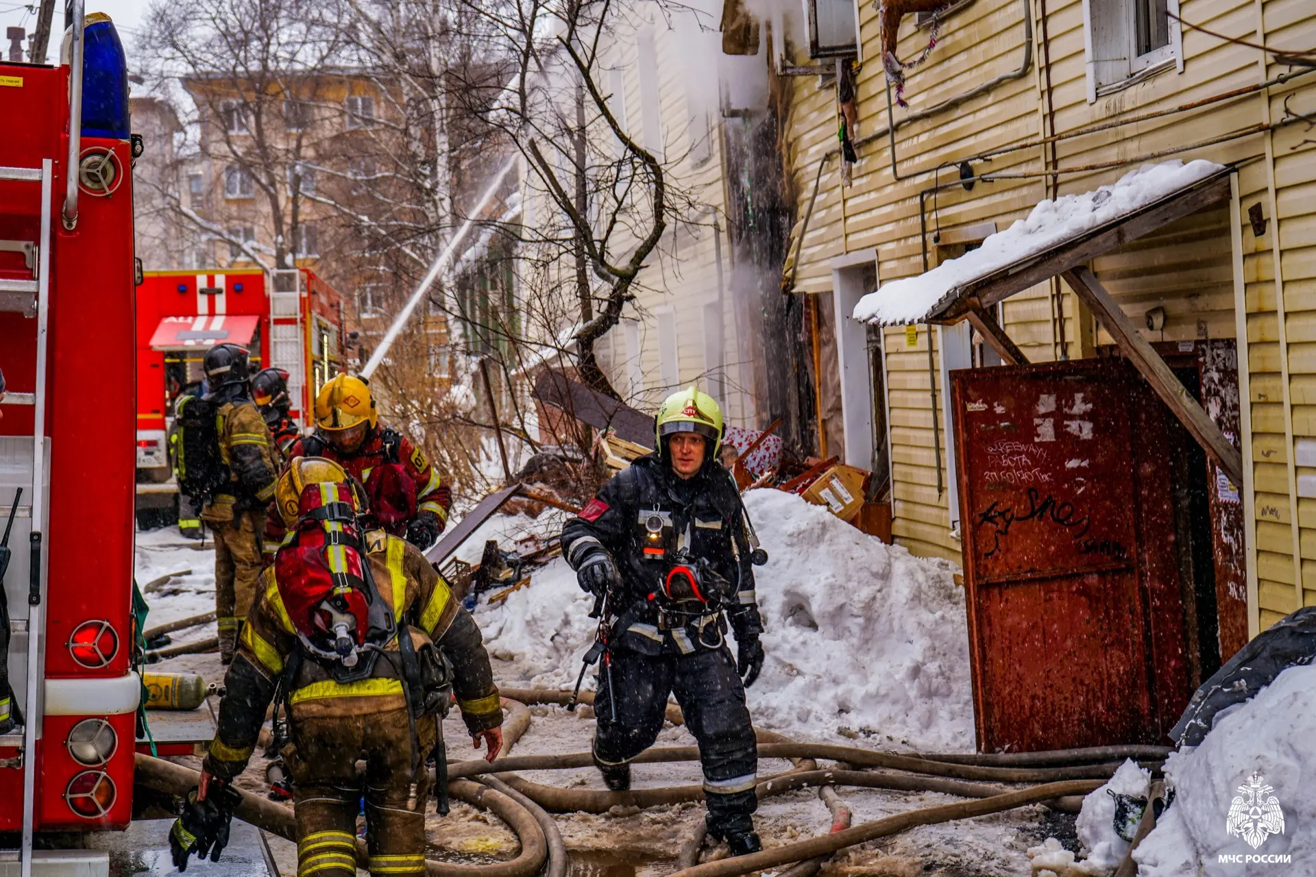 Огнеборцы эвакуировали из здания людей и домашних животных. Ведомство опубликовало фото с места происшествия, на которых видно, как пожарные выходят из задымленного помещения на мороз. Из-за разницы температуры тела и холодного воздуха от спасателей буквально идет пар.