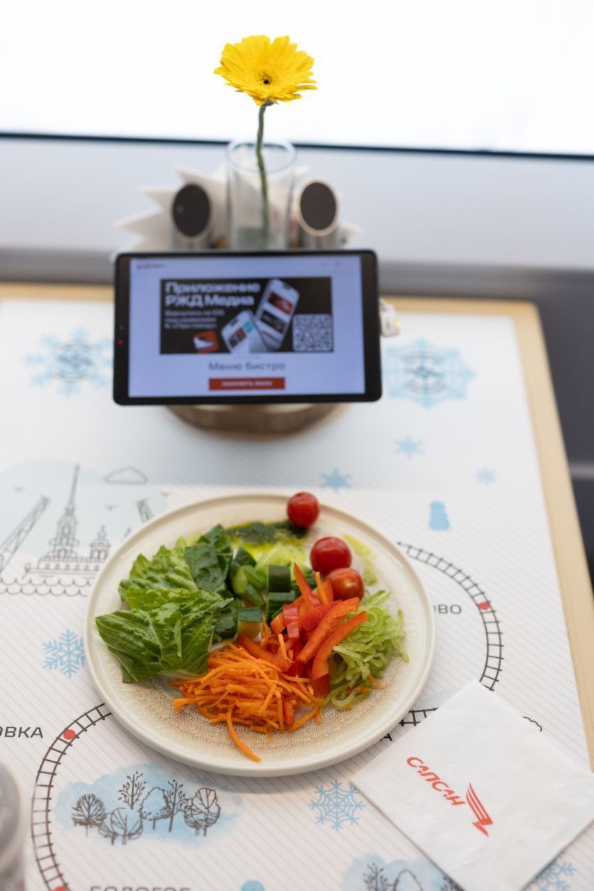 «Гостям предлагается широкий выбор блюд, приготовленных без продуктов животного происхождения», — отметили в РЖД.
