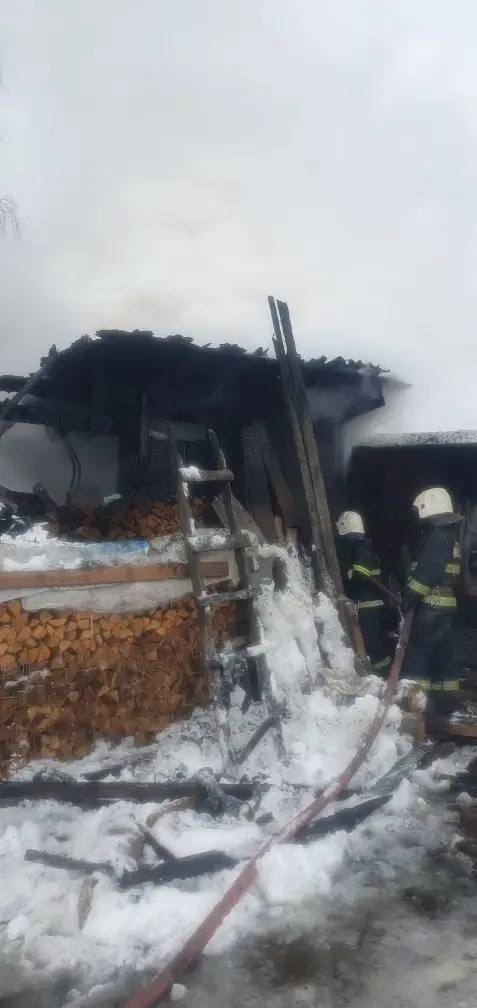 Сарай площадью 20 квадратных метров был полностью уничтожен огнем. Пожарные приступили к разбору и проливке.