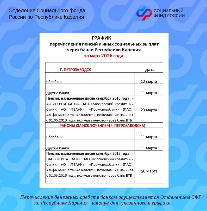 Региональную социальную доплату за март Отделение Соцфонда по Карелии перечислит вместе с пенсией по графику выплаты пенсий.