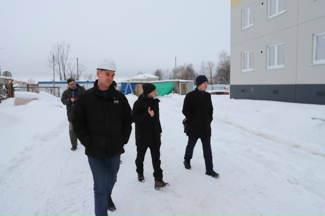 Вместе с вице-премьером республики по инфраструктуре Виктором Россыпновым председатель Законодательного Собрания проверили ход строительства дома для переселения из аварийного жилья в Беломорске.