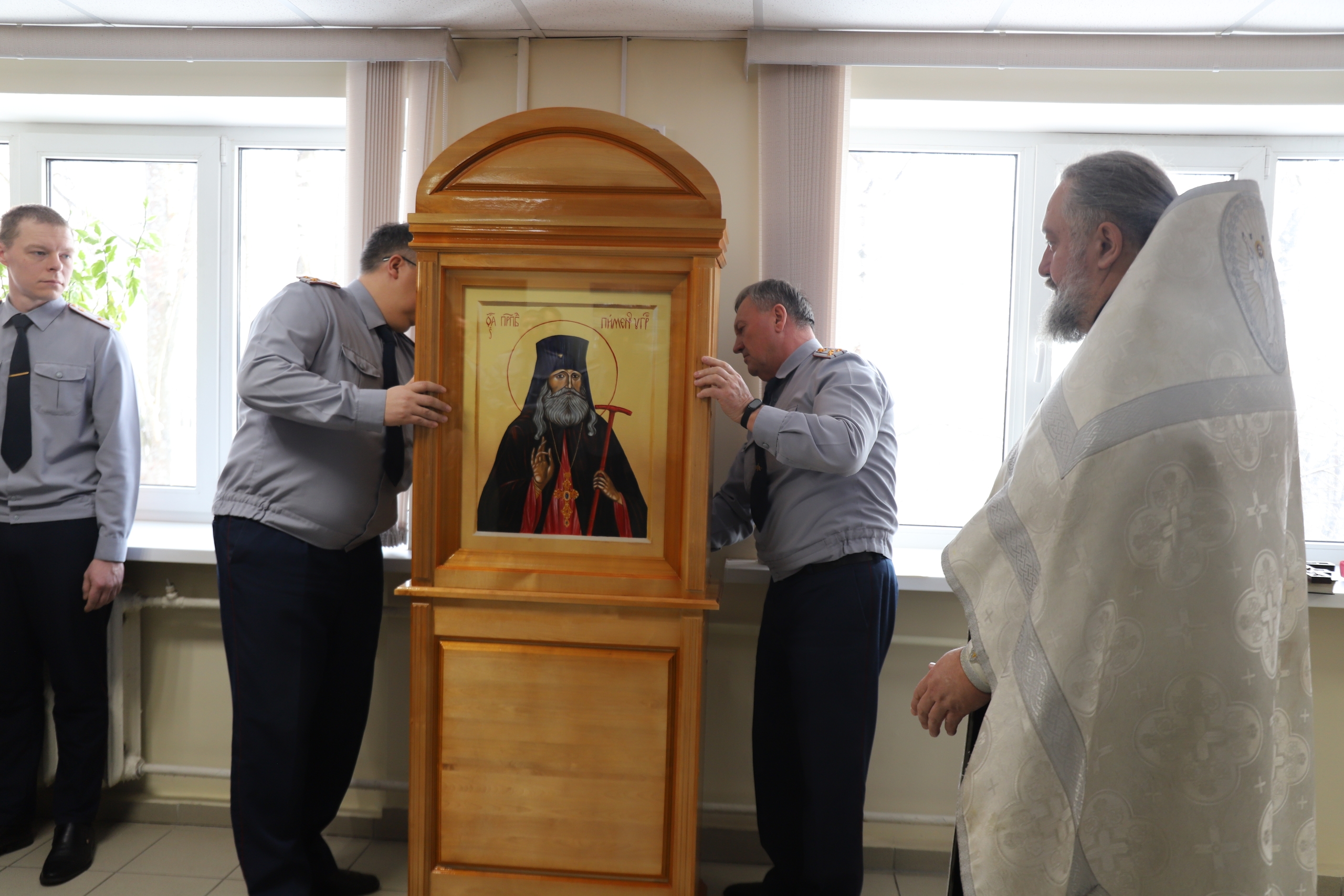 В Петрозаводске в здании УФСИН России по Карелии торжественно установили икону преподобного Пимена Угрешского. Он почитается как небесный покровитель сотрудников уголовно-исполнительной системы. Мероприятие приурочили к 147-летию уголовно-исполнительной системы России, сообщили в ведомстве.