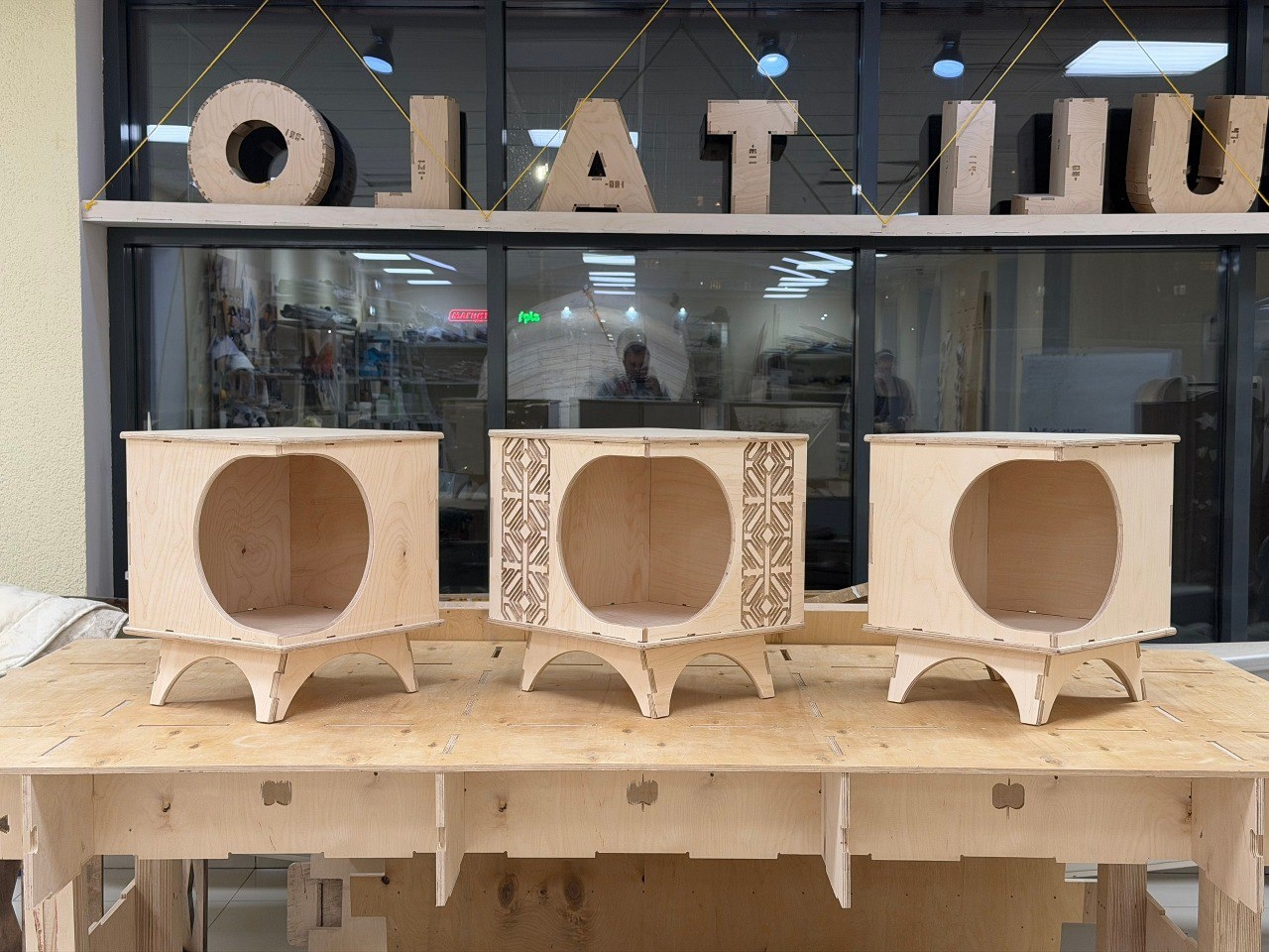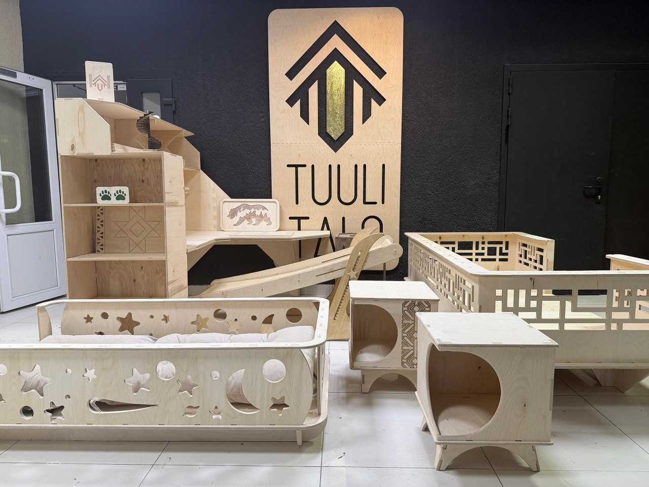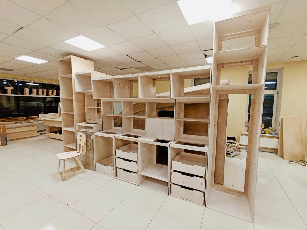 Теперь предприятие активно включилось в обустройство жилых помещений и придворовых территорий. В 2026 году было запущено производство корпусной и кухонной мебели из фанеры, лежаков, ящичков для хранения посуды, столовых приборов, специй, домиков для животных и др.