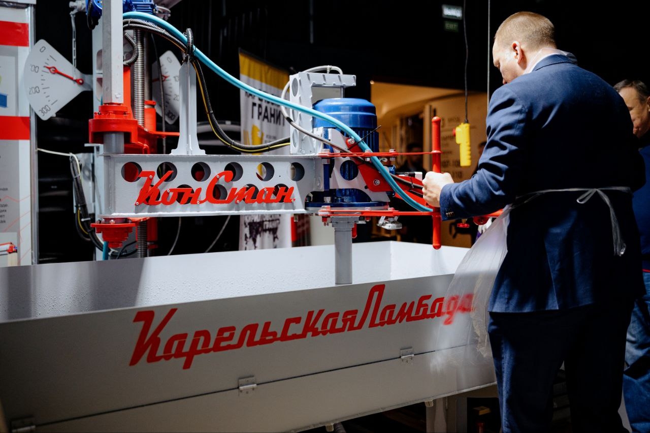 Особый интерес вызвала инновационная разработка «Проекта» — «Карельская Ломбада» под брендом «КонСтан». Посетители могли сами попробовать себя в роли полировщика камня и оценить технику работы на оборудовании из Карелии.