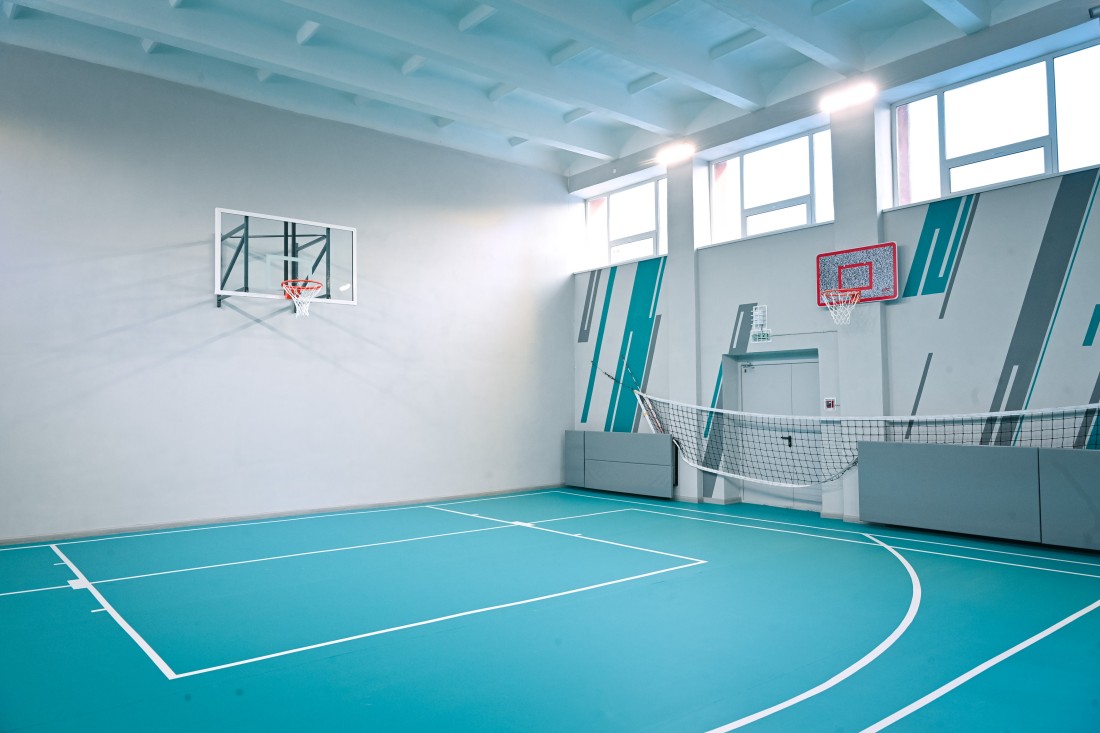 По итогам ремонта зале уложили специальное покрытие для занятий спорТом, установили пластиковые окна, современное светодиодное освещение, баскетбольные кольца и другое оборудование, отремонтировали раздевалки, заменили сети электро-, тепло-, водоснабжения и канализации. Работы выполнили в рамках государственной программы «Спорт России».