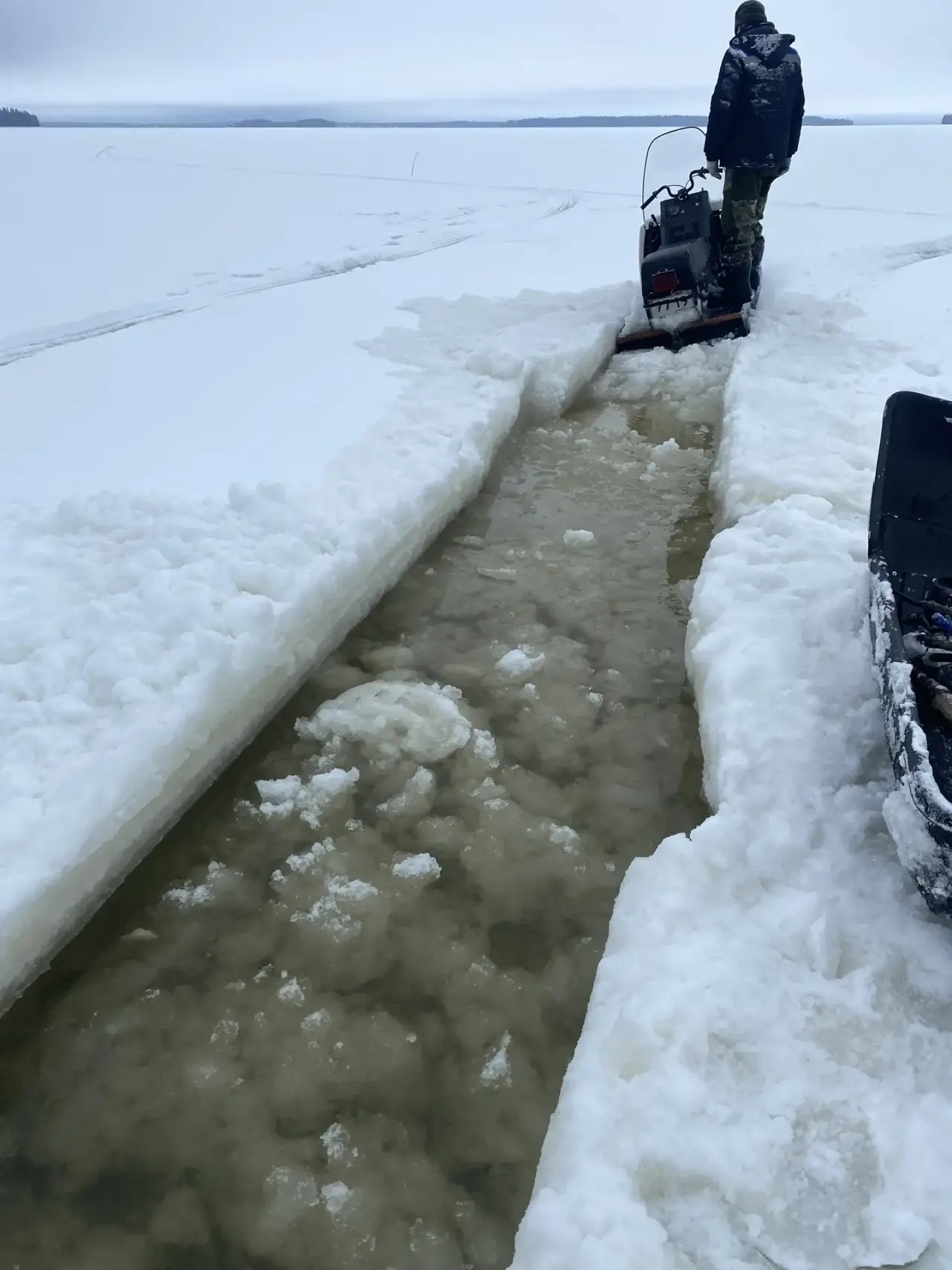 Национальный парк «Водлозерский» предупредил туристов об опасности на льду. Из-за плюсовых температур и активного солнца озеро Водлозеро стремительно теряет прочность. Лунки размываются, появилась вода, уже зафиксированы провалы под ногами.