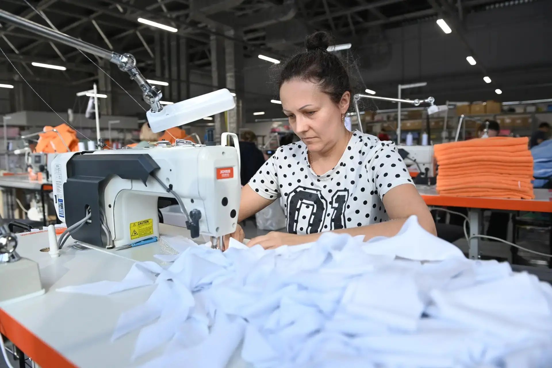 На территории технопарка размещены и сопутствующие производства. Среди промышленных площадок, которые сегодня посетил Артур Парфенчиков, – швейная фабрика компании «Ярки Лапки». Полотенца, скатерти и другую текстильную продукцию компания активно продает через маркетплейсы.