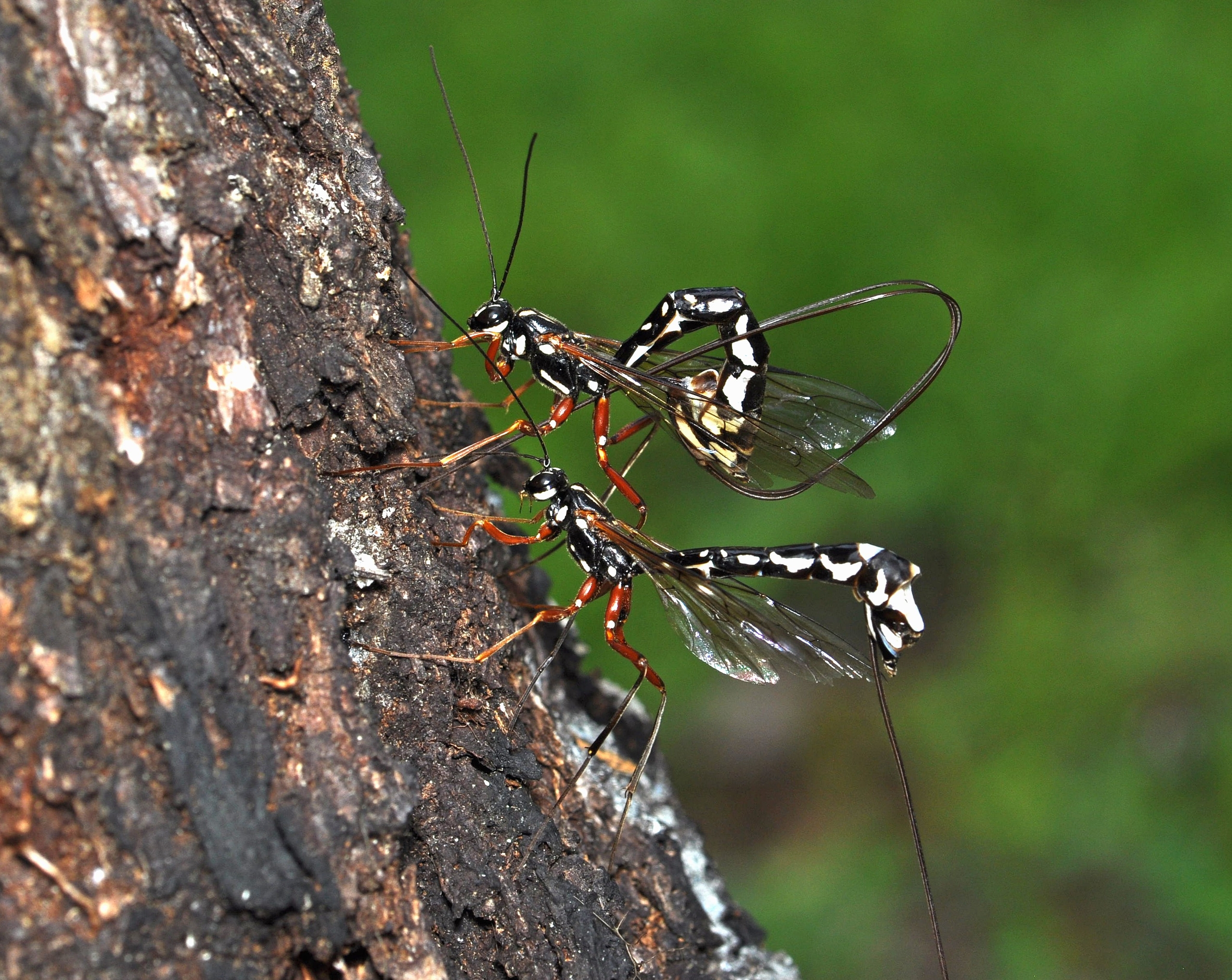 Наездники — близкие родственники ос, но вместо жала у них яйцеклад. Они не опасны для человека, зато их личинки паразитируют на вредителях деревьев и сельхозкультур, поэтому некоторых используют для биологической защиты.